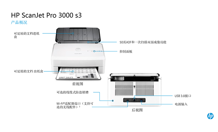 商品名称:惠普HP SCANJET PRO 3000 S3 馈纸式扫描仪