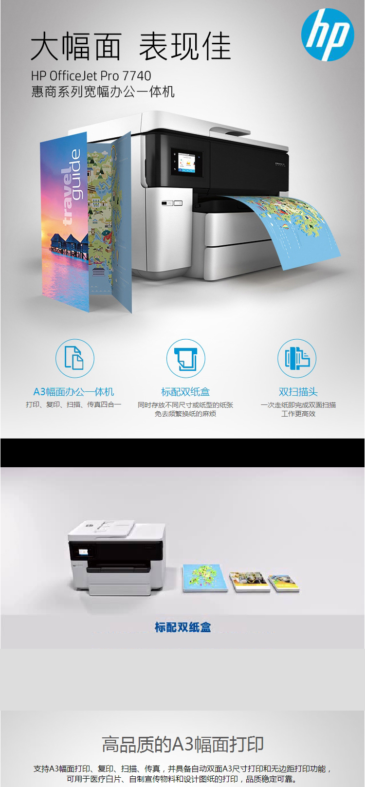 商品名称:惠普(HP) 7740 A3彩色喷墨多功能打印复印扫描传真一体机打印机