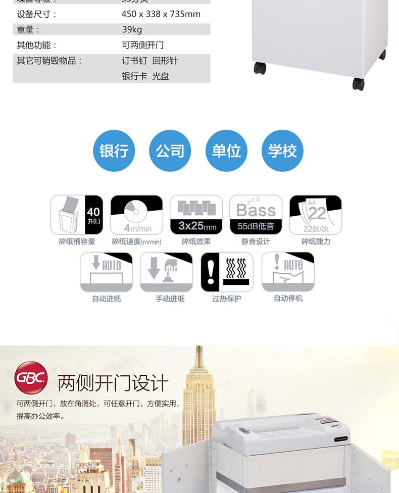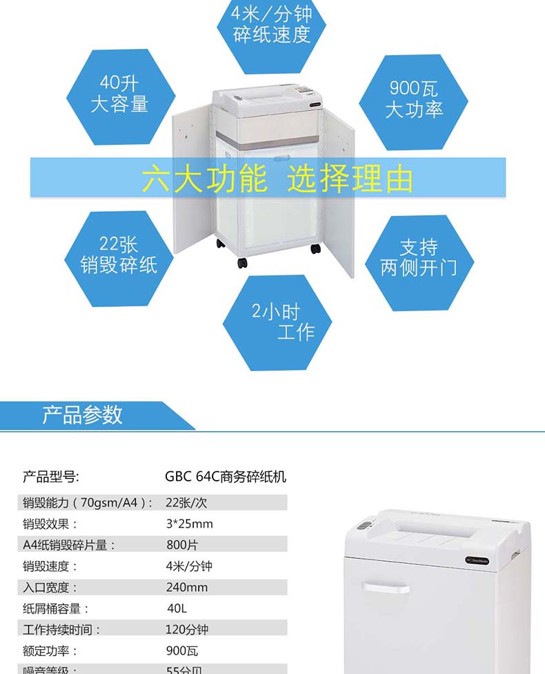 商品名称:杰必喜(GBC)PRO64C 碎纸机 办公 一次碎22张 40L容量(不包邮)