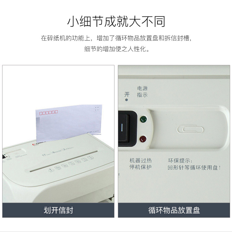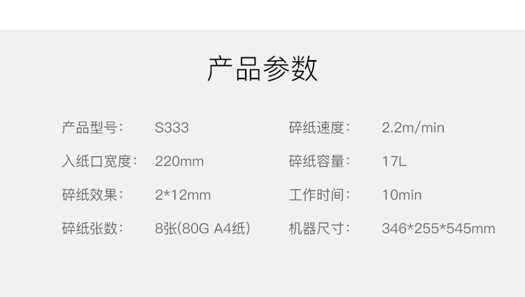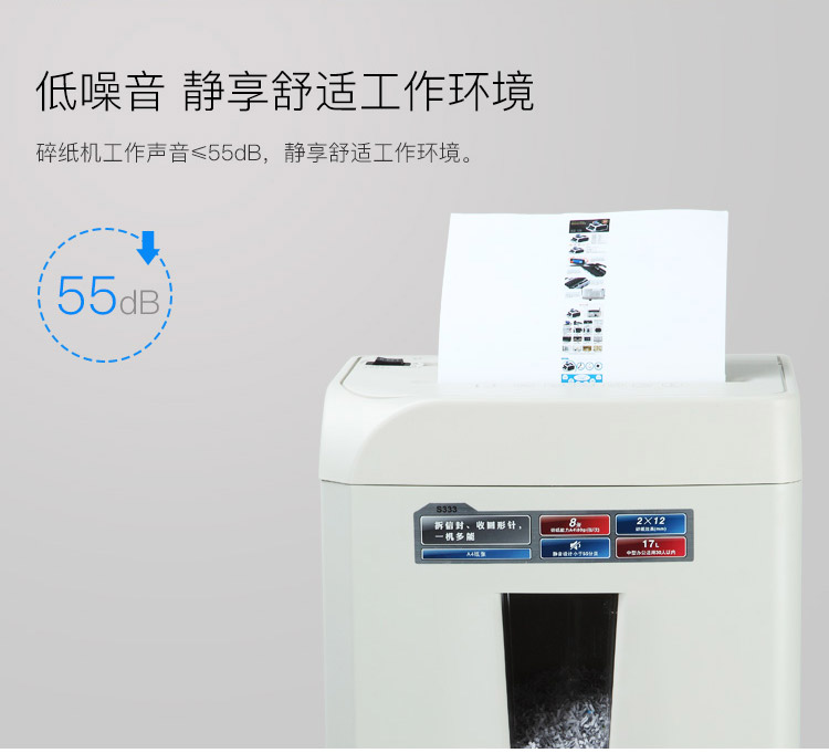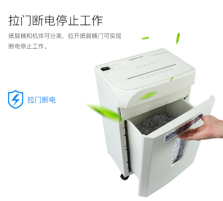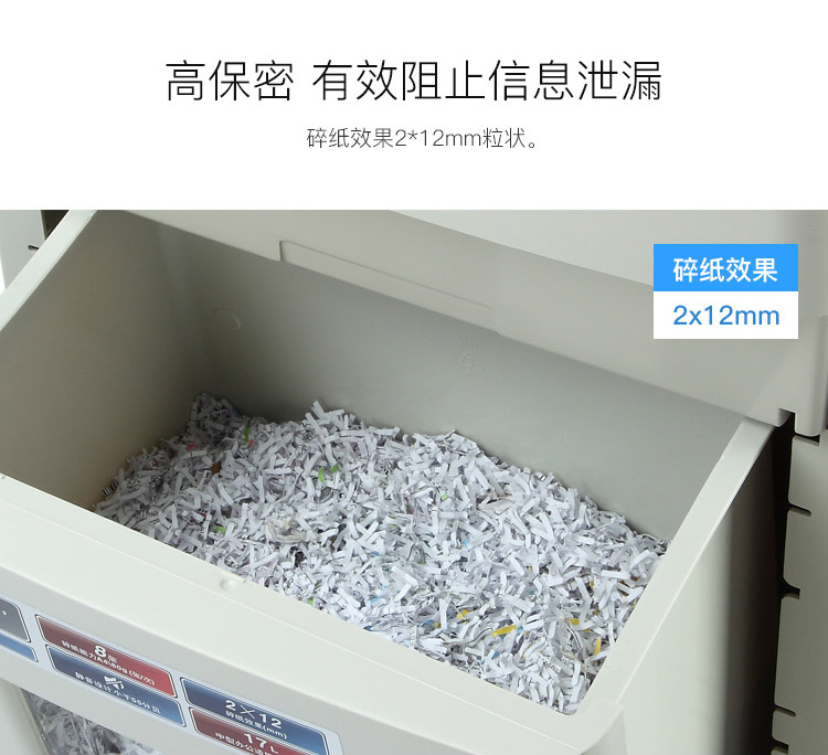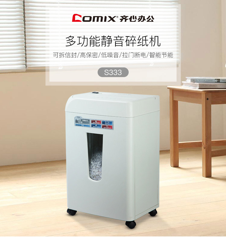 商品名称:齐心(COMIX)S333 强力保密型碎纸机 2×12mm/8张纸/17L/单入口