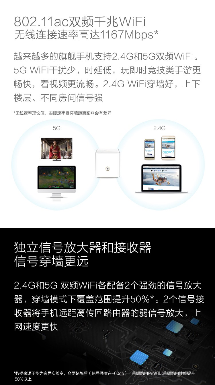 荣耀路由Pro光纤宽带大户型穿墙1200Mbps有线无线双千兆智能无线