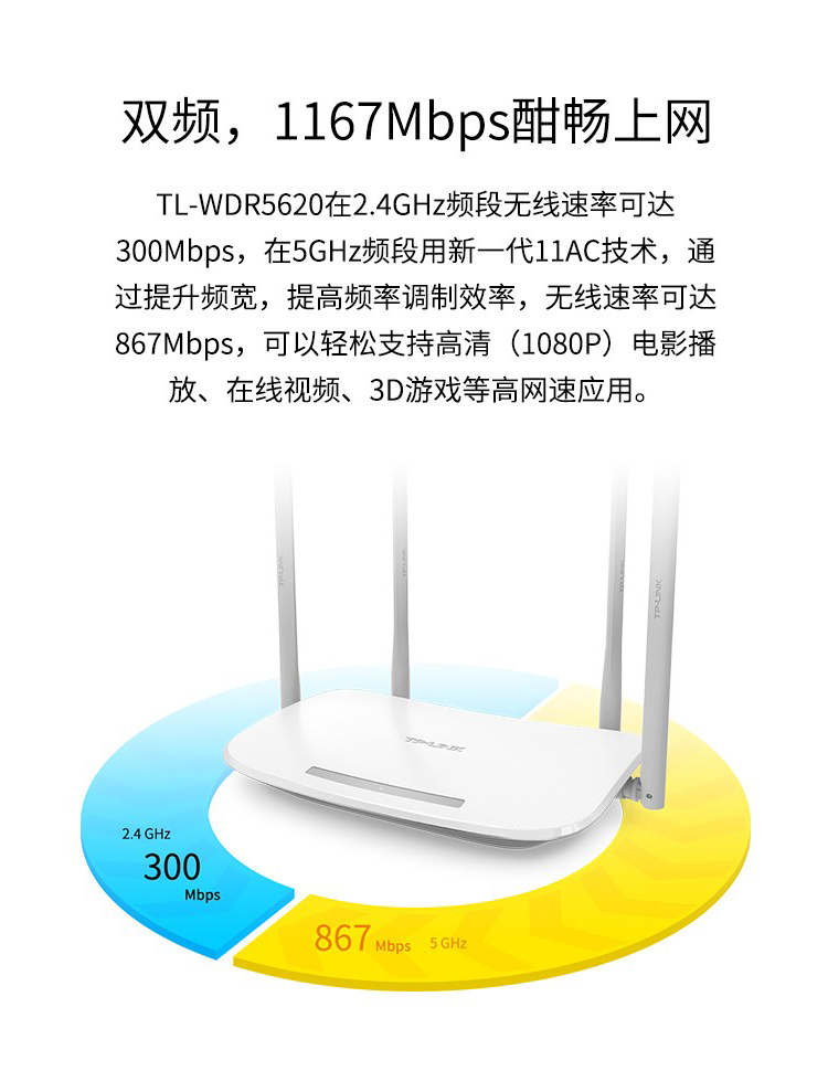 商品名称:TP-LINK TL-WDR7300 2100M智能11AC双频无线路由器 安全稳定光纤
