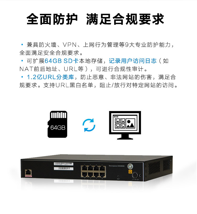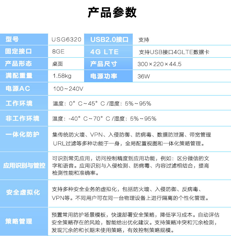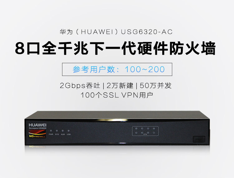 商品名称:华为(HUAWEI)USG6320 下一代企业级8口千兆硬件防火墙