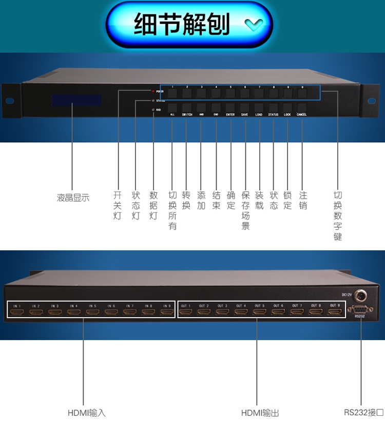 商品名称:欧迪特VGA矩阵切换器32进32视频监控分配器1080P高清升级音视频