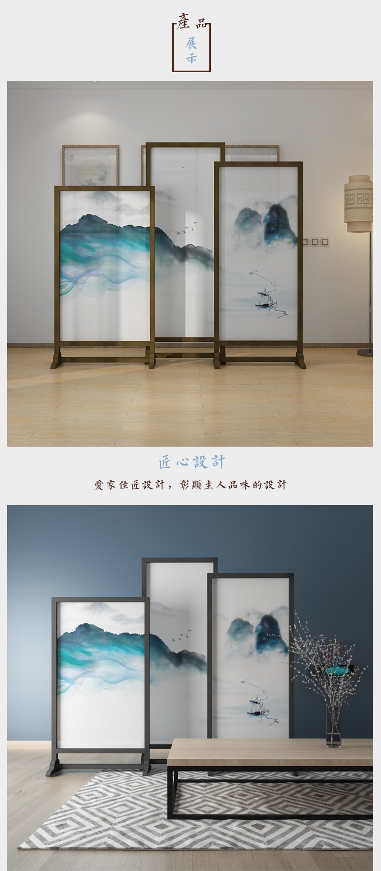 商品名称:简约现代实木透明折叠屏风玄关客厅书房卧室隔断山水屏风3扇胡
