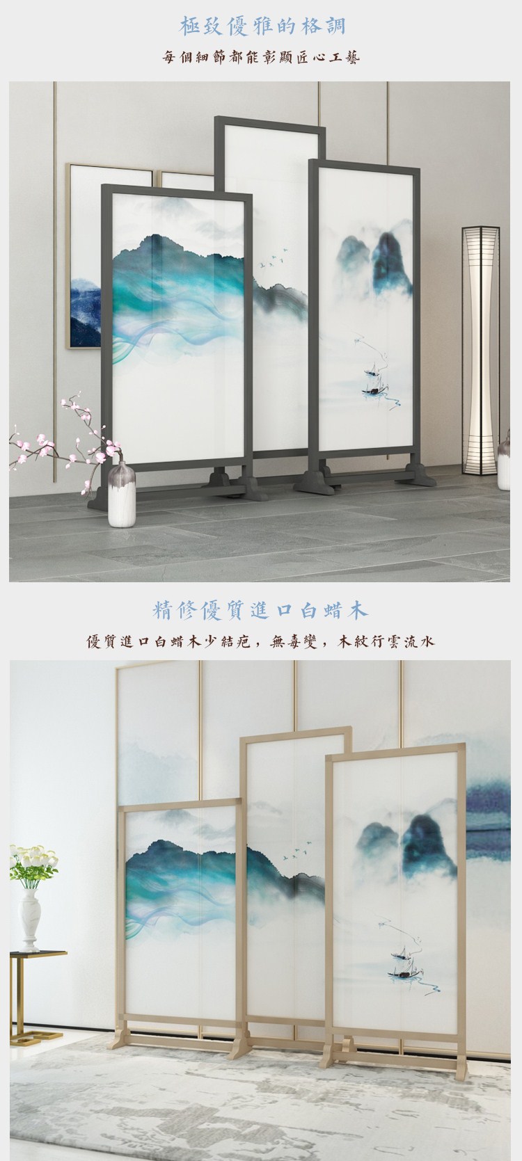 简约现代实木透明折叠屏风玄关客厅书房卧室隔断山水屏风3扇胡