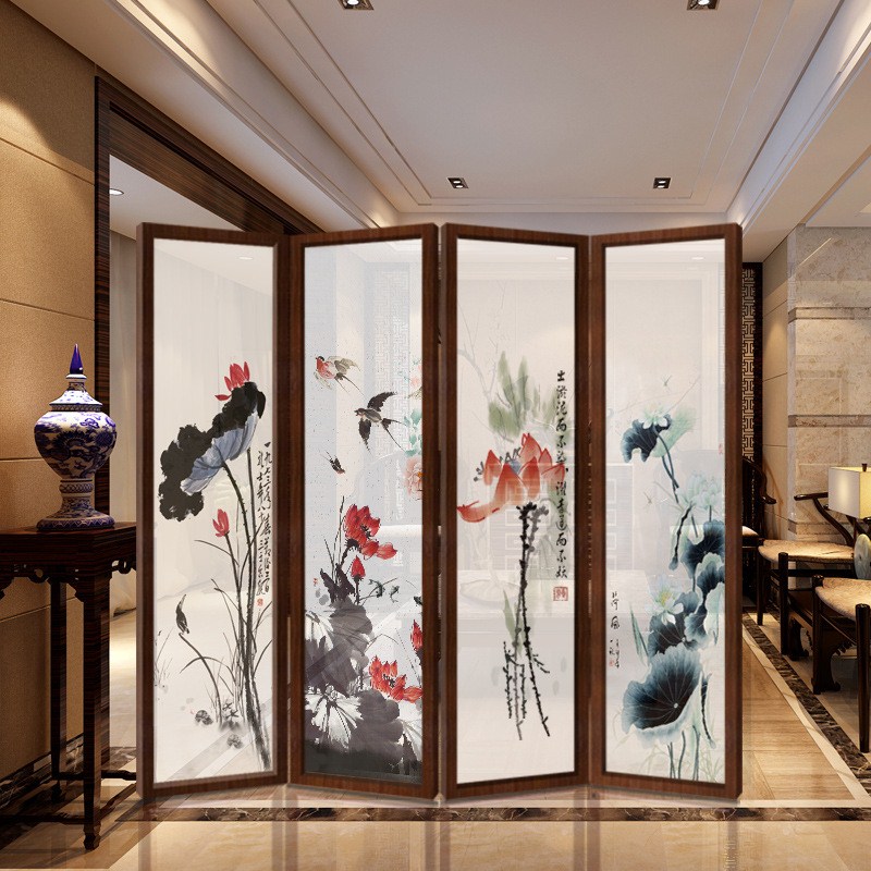屏风古典新古典屏风隔断客厅简约现代折屏玄关办公创意实木半透