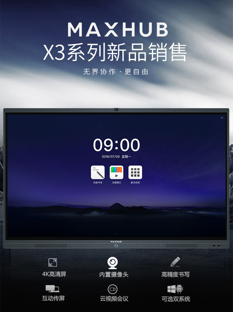 新品MAXHUB X3标准版 4K屏智能会议平板 电子白板视频会议办公设
