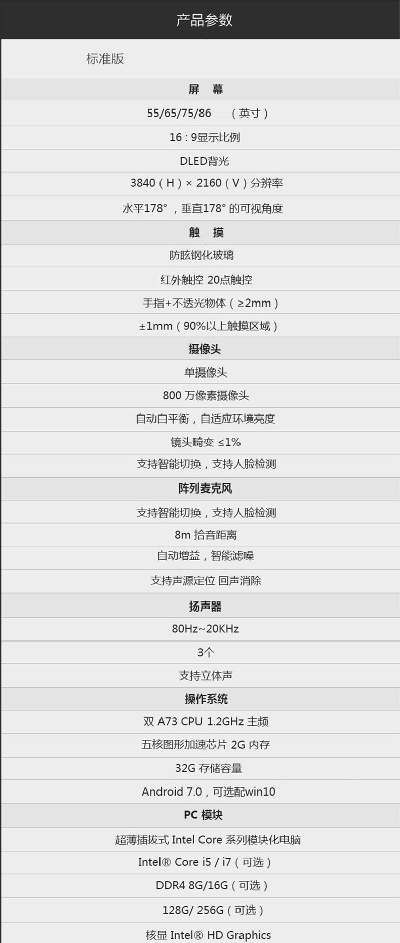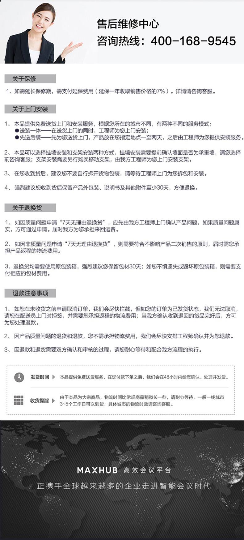 商品名称:新品MAXHUB X3标准版 4K屏智能会议平板 电子白板视频会议办公设