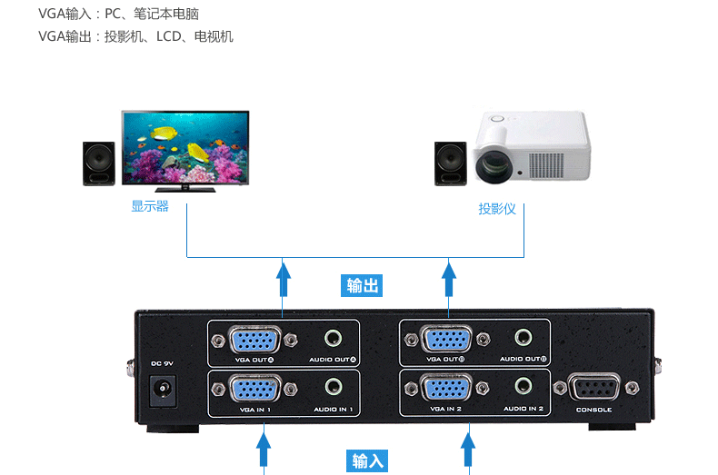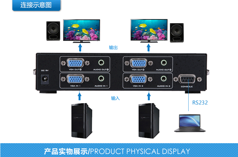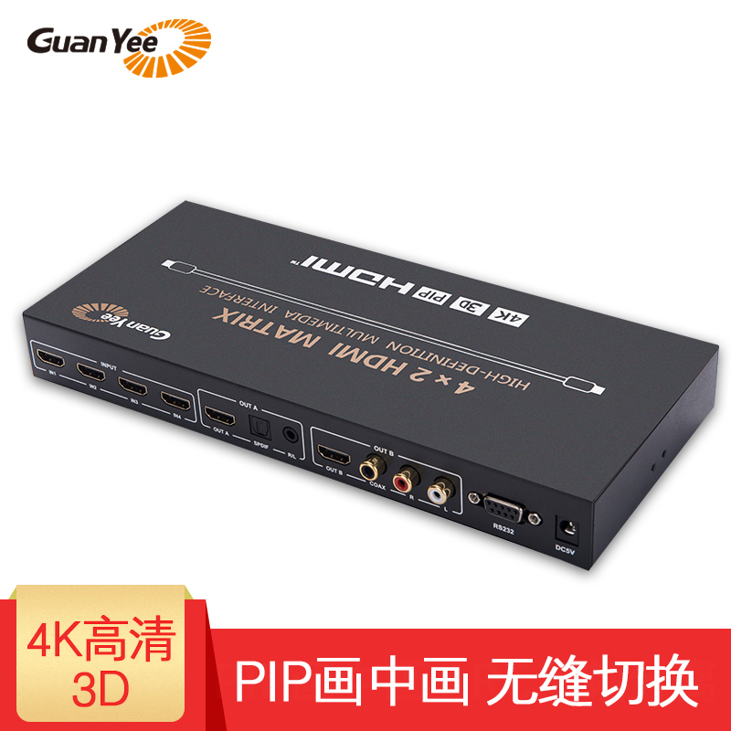 商品名称:GUANYEE工程级HDMI2.0高清矩阵四进二出+双音频输出+RS232/4K*2K