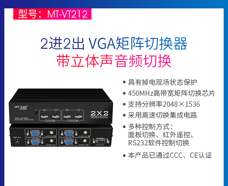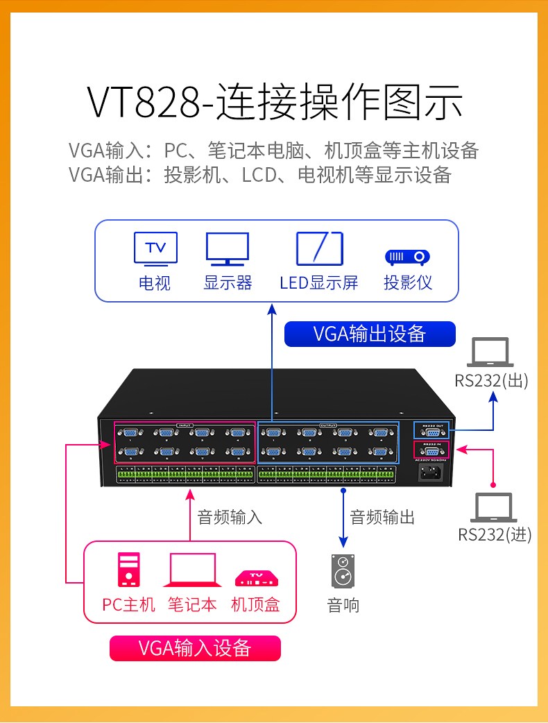 eKL VGA八进八出真矩阵 高清视频音频模拟信号分屏切换