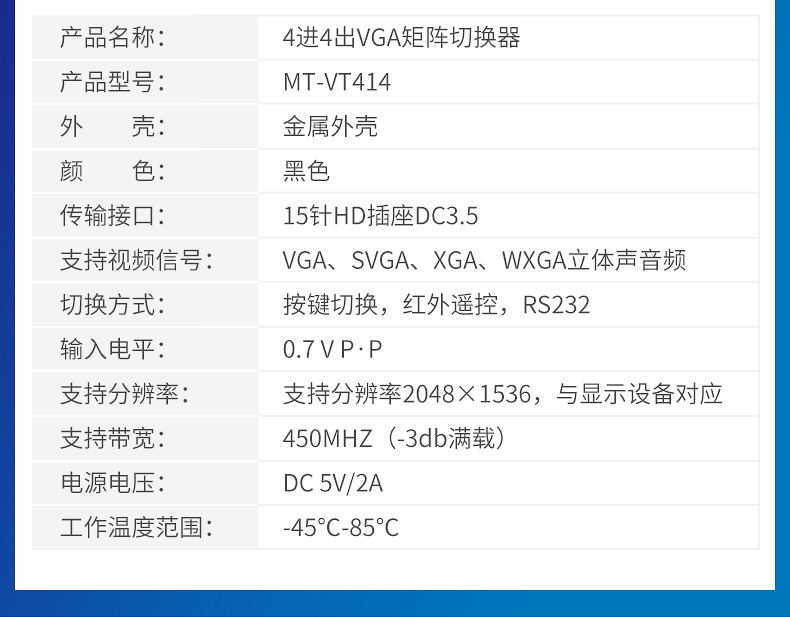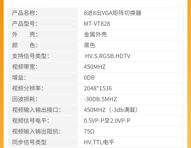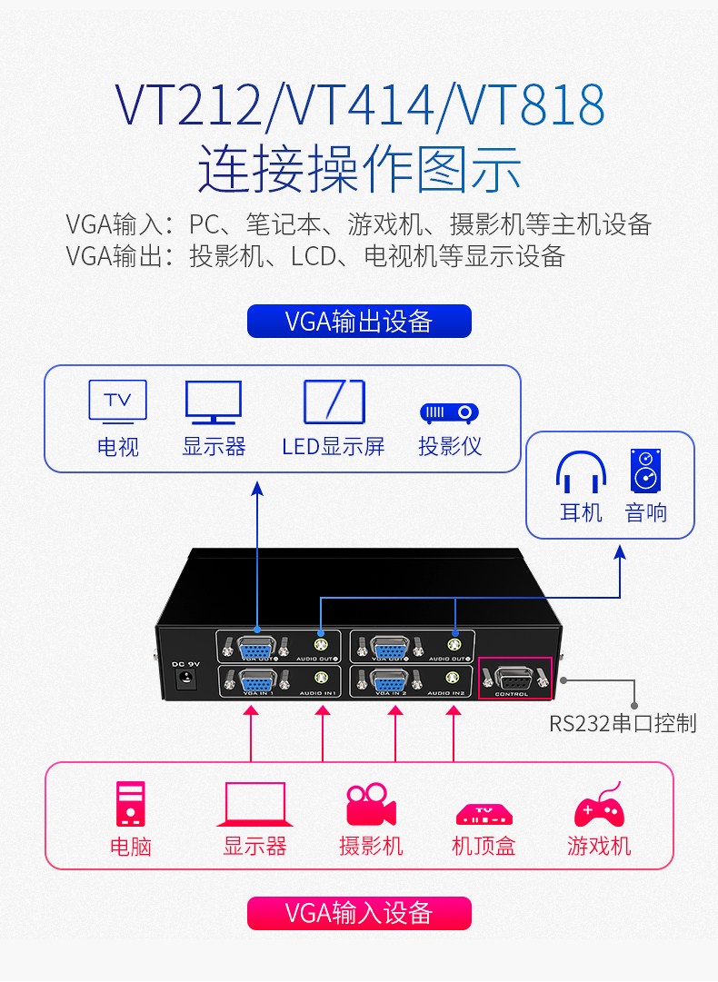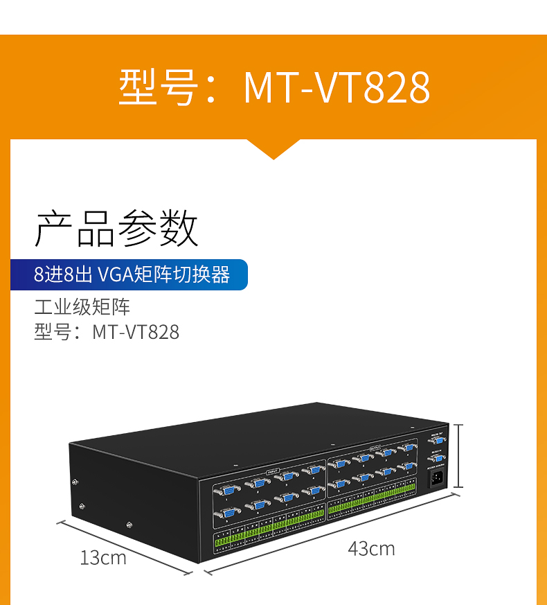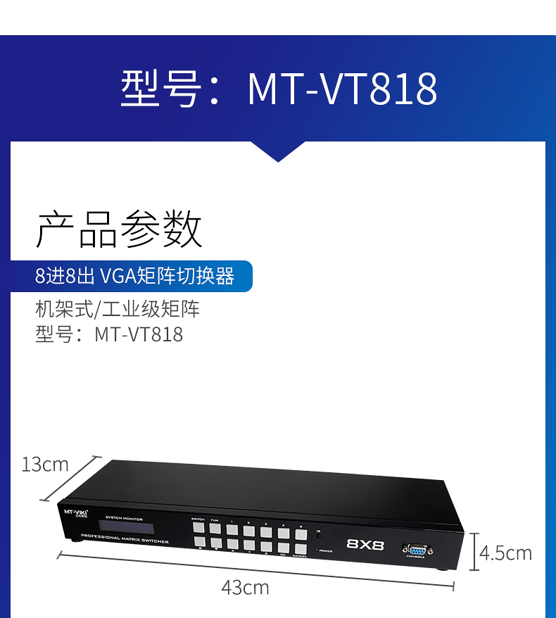 商品名称:eKL VGA八进八出真矩阵 高清视频音频模拟信号分屏切换