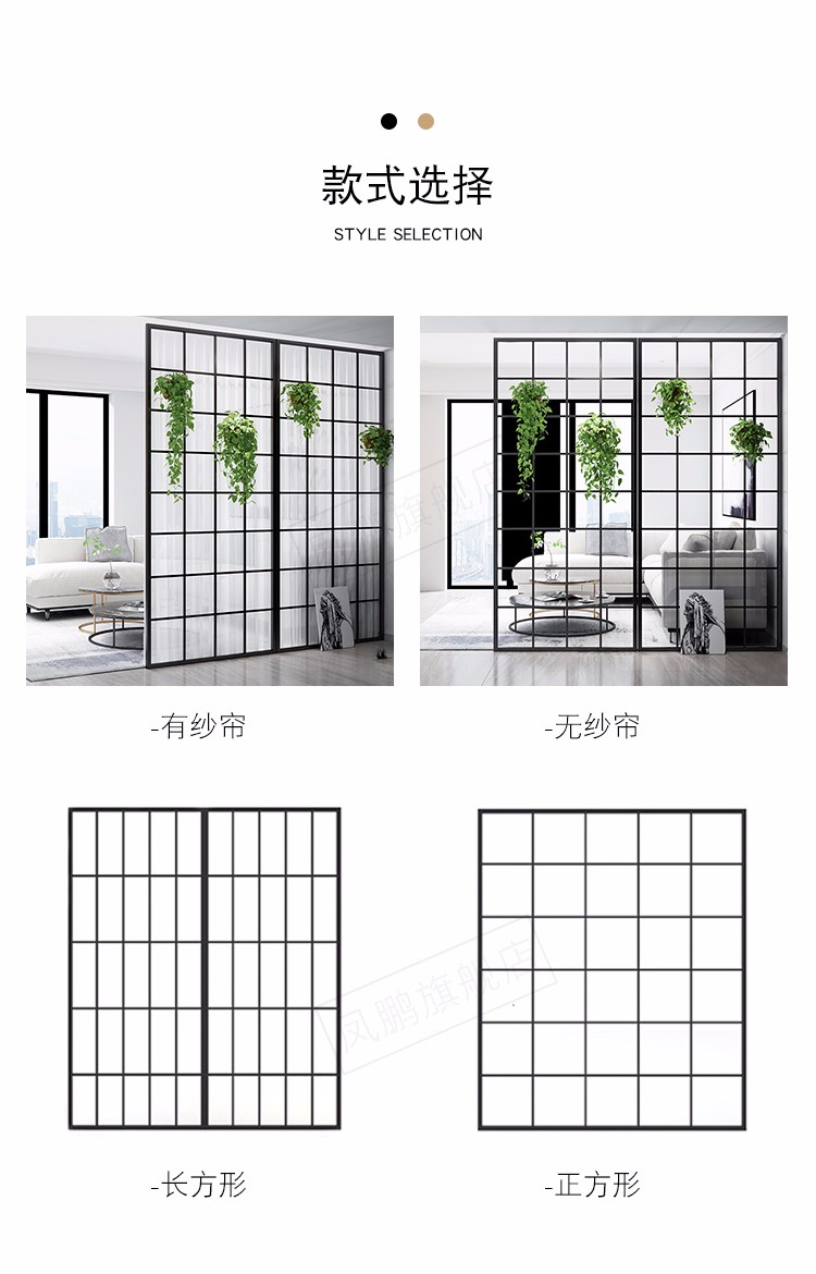 商品名称:凤鹏北欧简约房间卧室客厅铁艺装饰屏风隔断家用餐厅玄关服装店