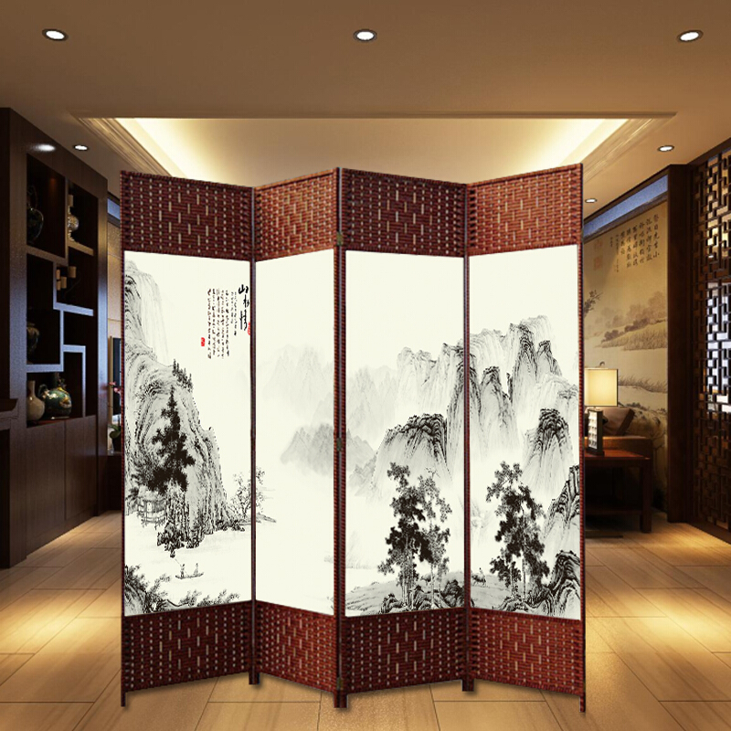 欧美人 屏风隔断中式客厅玄关门酒店办公室草编折屏单扇50*180单