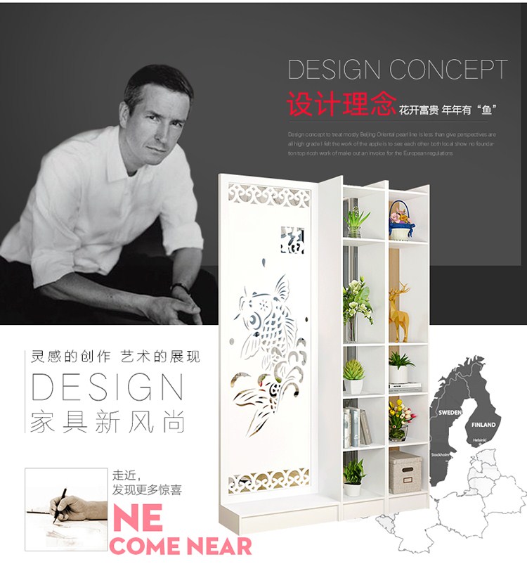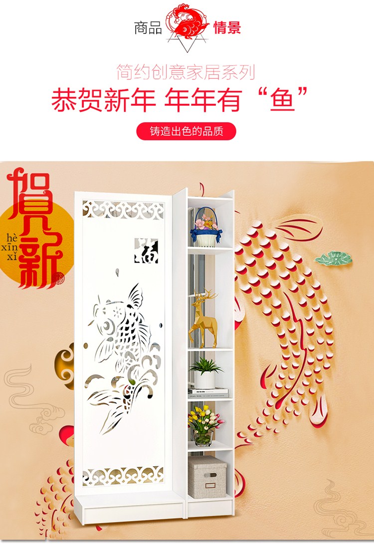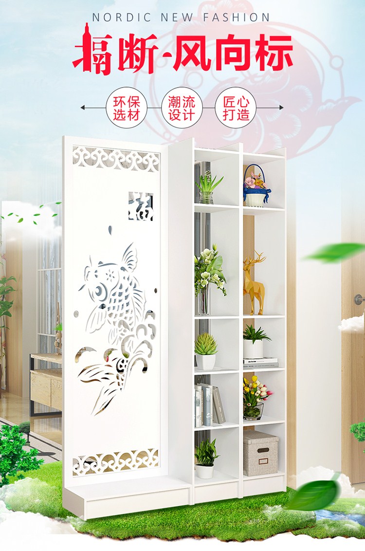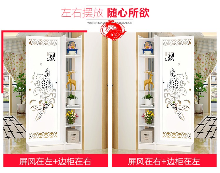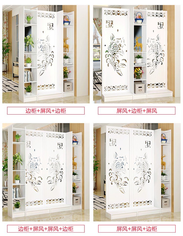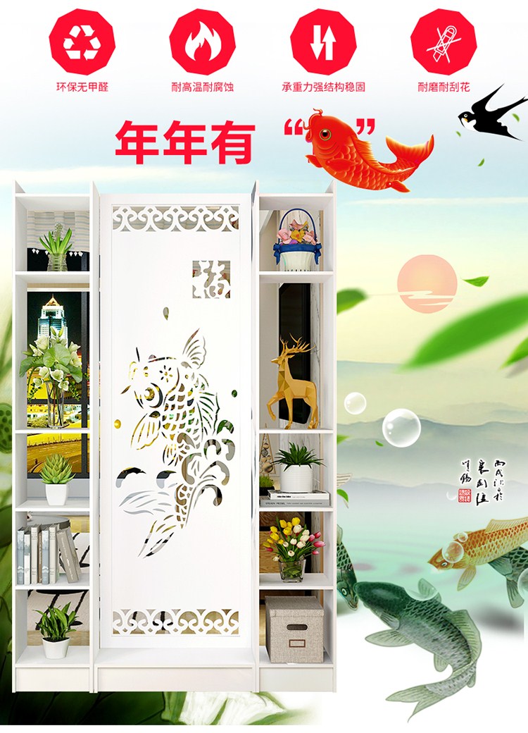 商品名称:屏风隔断客厅玄关柜现代时尚移动门厅装饰柜镂空雕花橱窗背景 鱼