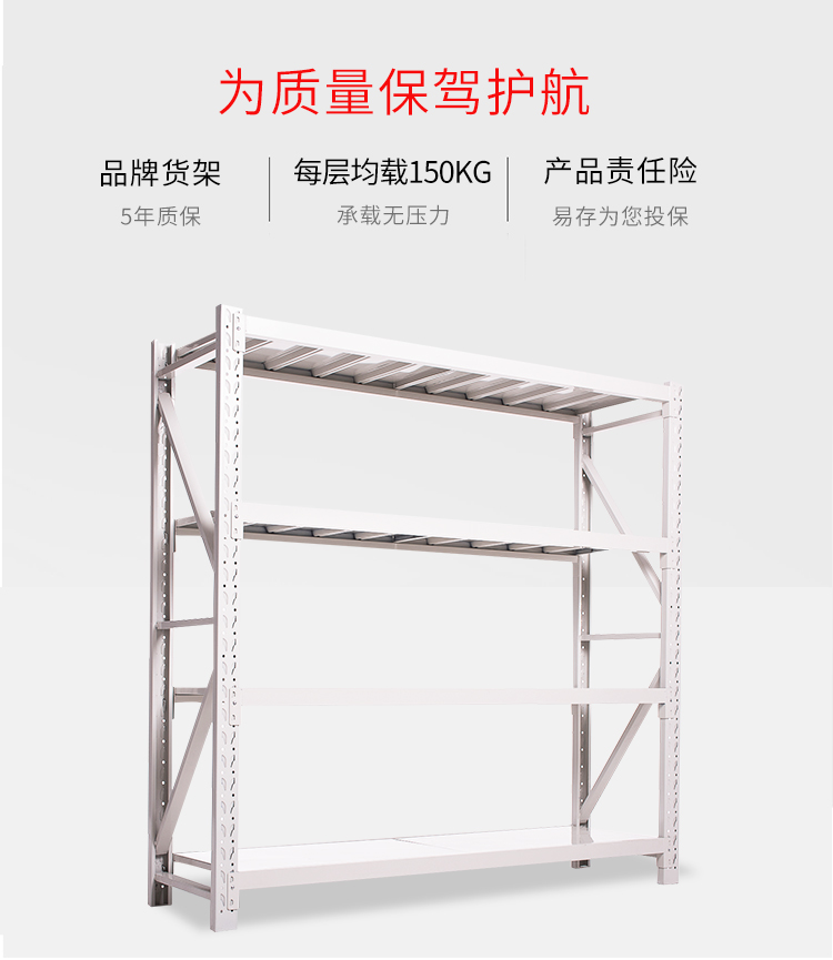 易存轻型货架仓储家用层架收纳架子置物架储物架白色150*50*200四