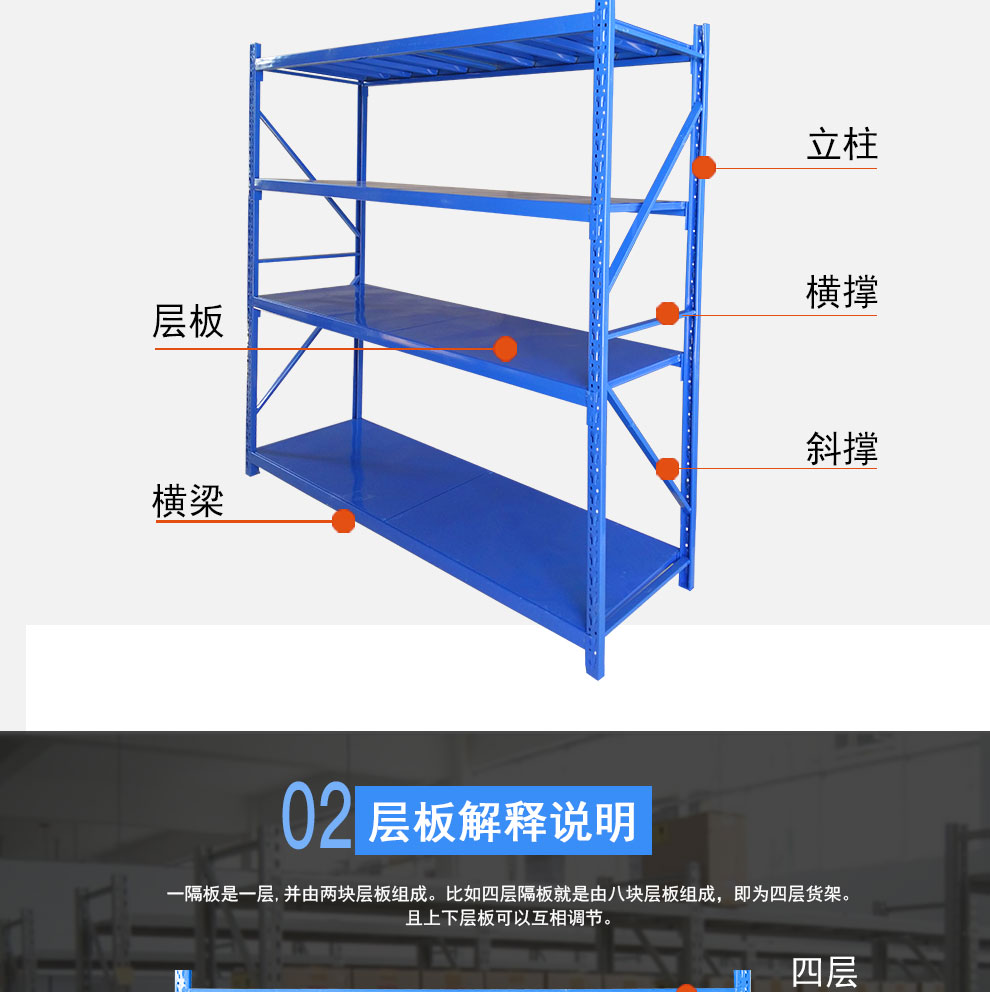实承货架仓储货架层架180kg/层仓库货架家用金属货架超市展示架储