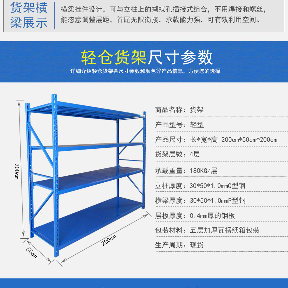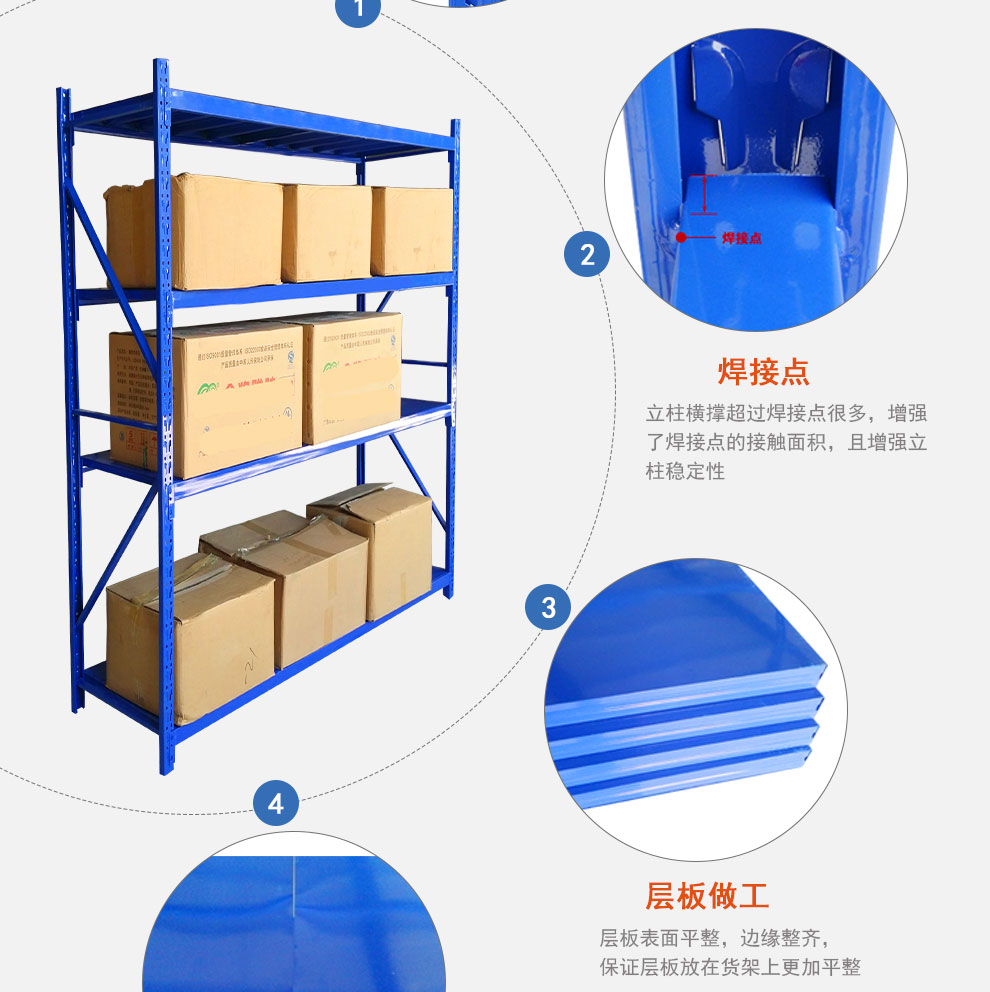 商品名称:实承货架仓储货架层架180kg/层仓库货架家用金属货架超市展示架储