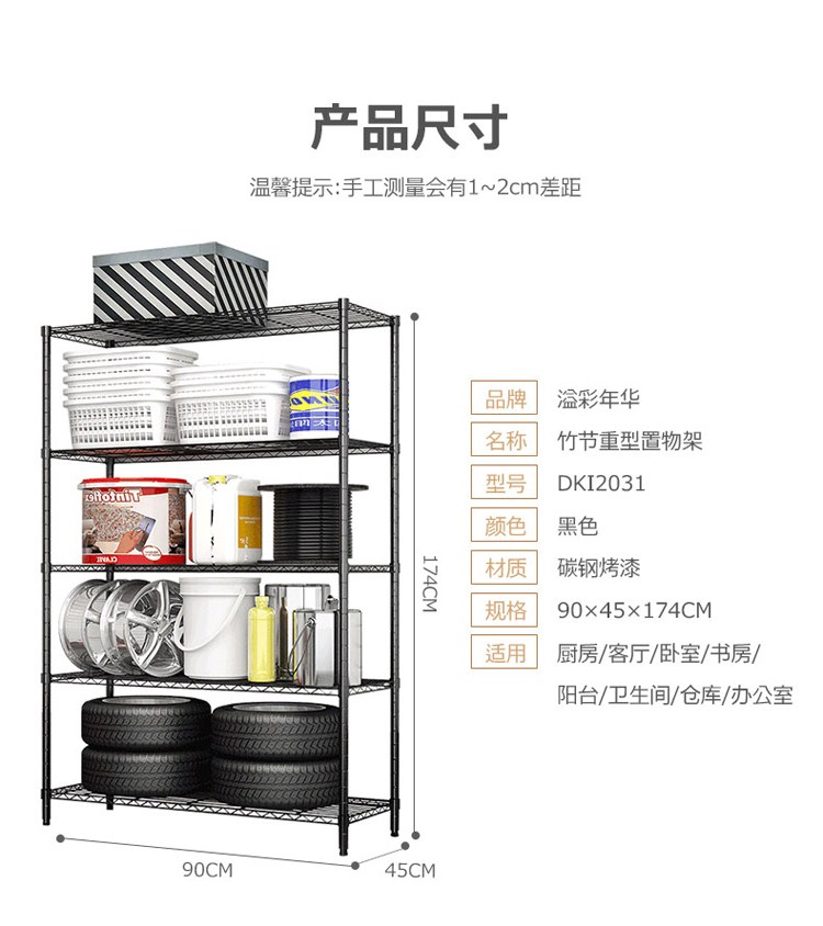 商品名称:溢彩年华 置物架 货架重型金属五层储物架90*45*174cm厨房客厅出