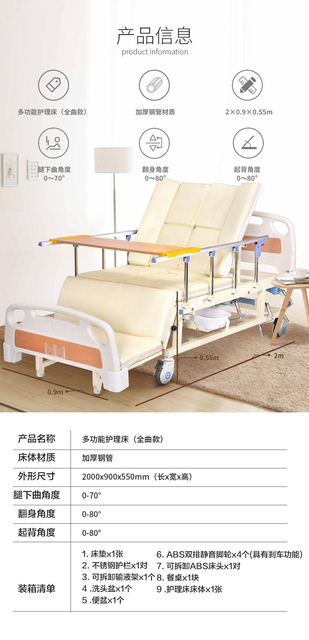 商品名称:钢塑 合佳(hejia) 护理床 老年人家用多功能医疗床医用病床医院瘫