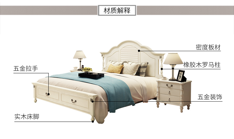 贝黎诗 床 实木床 美式床 美式乡村 韩式田园床 欧式床双人床现