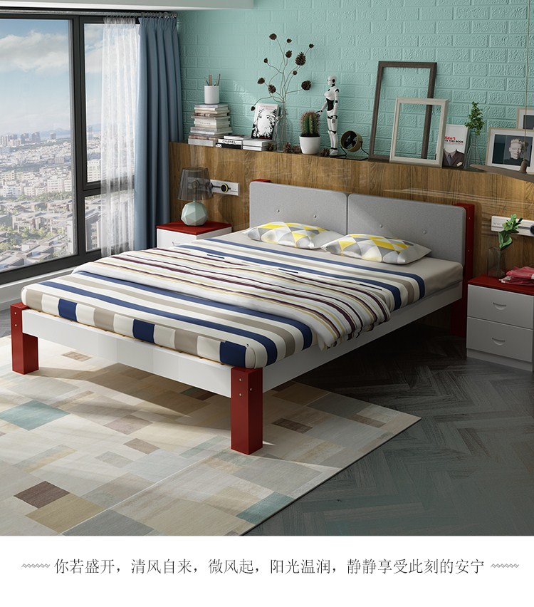 商品名称:帝灏木床实木床1.5单人床1.2米松木成人床双人床1.8米布艺床卧室
