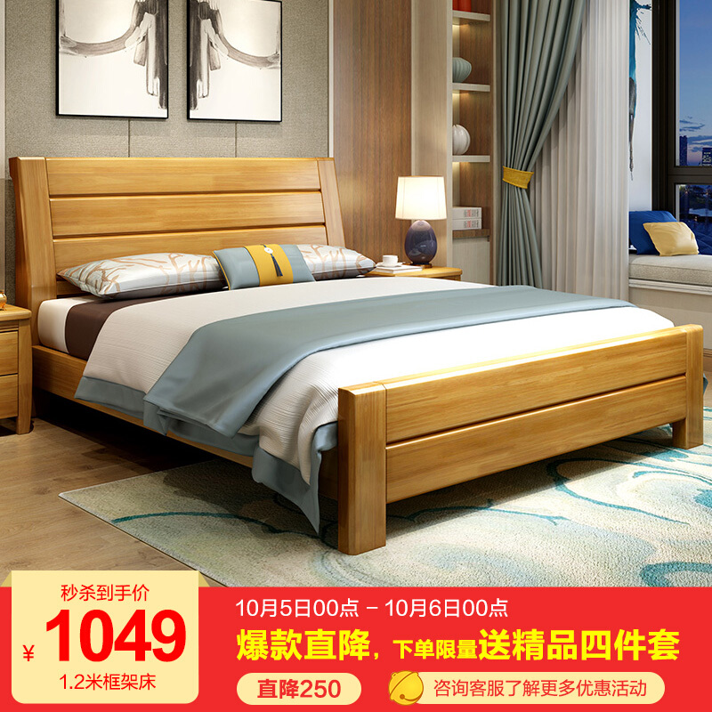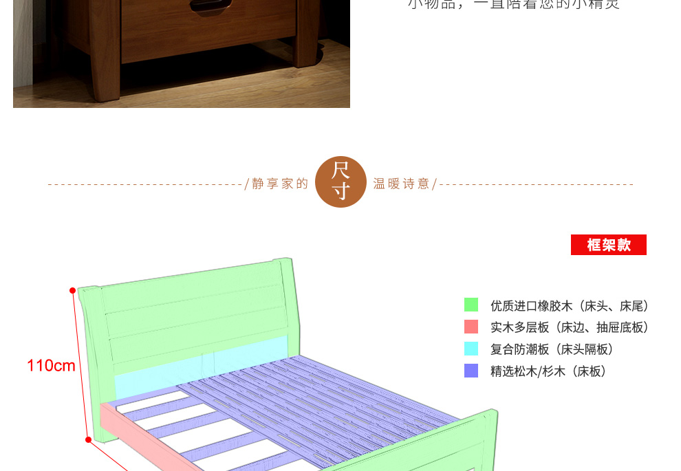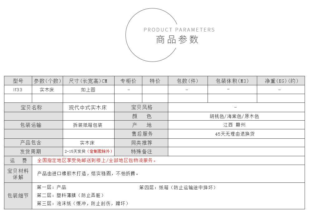 商品名称:鲁菲特 床 实木床1.8米双人大床1.5米现代中式婚床卧室家具 lf33
