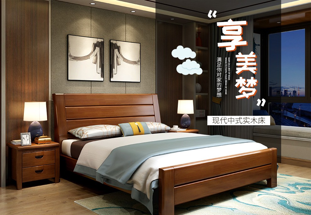 鲁菲特 床 实木床1.8米双人大床1.5米现代中式婚床卧室家具 lf33