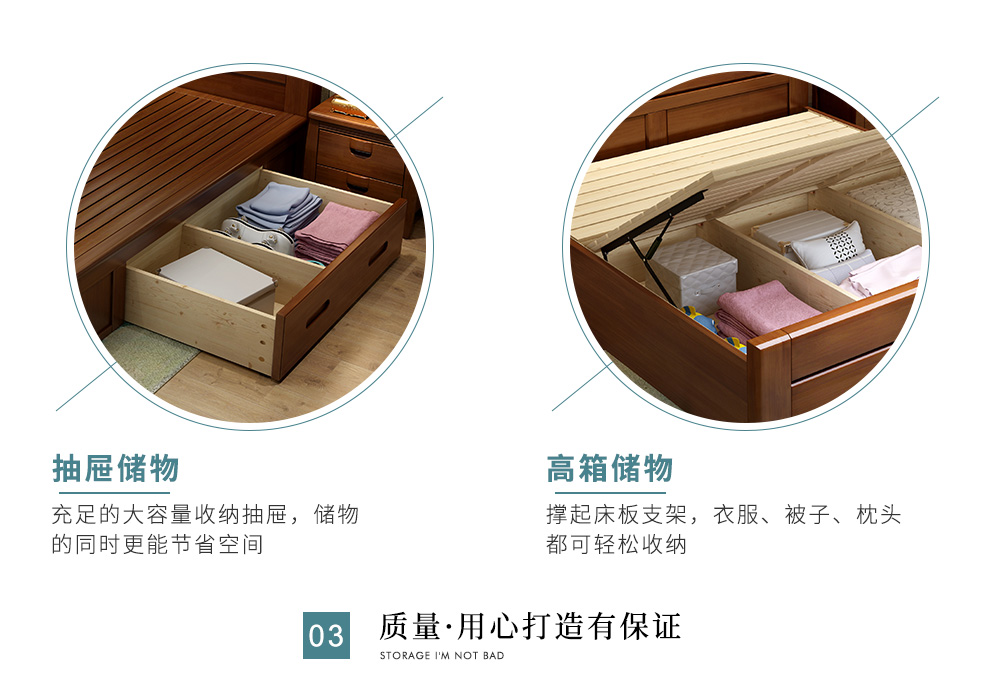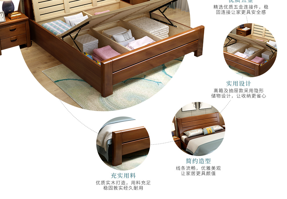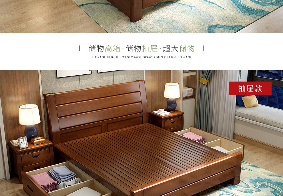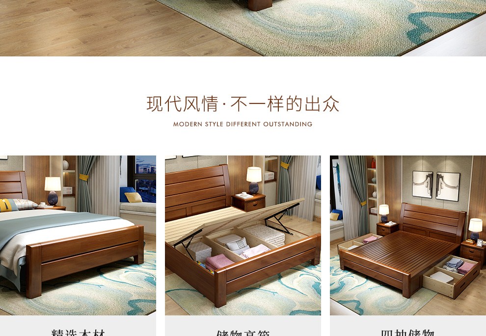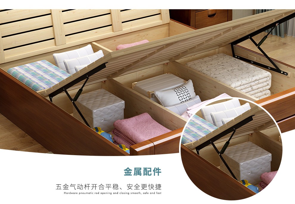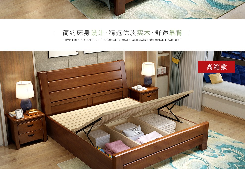 柏云森现代简约板式床1.2米1.5米1.8双人床榻榻米高箱储物床木质