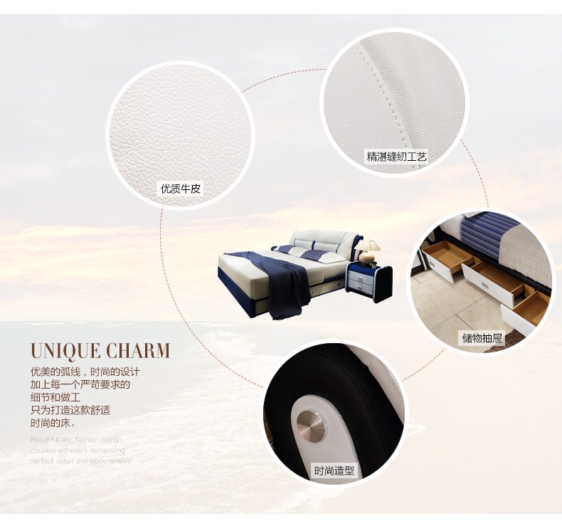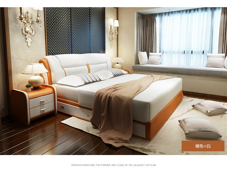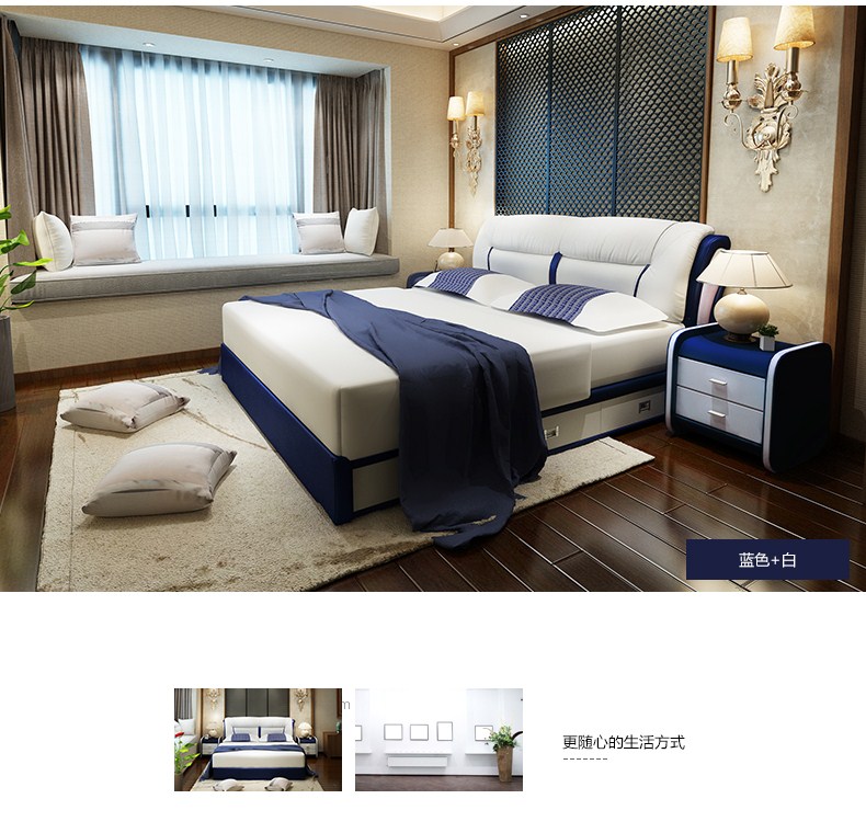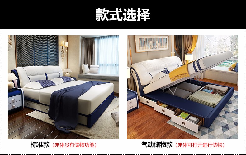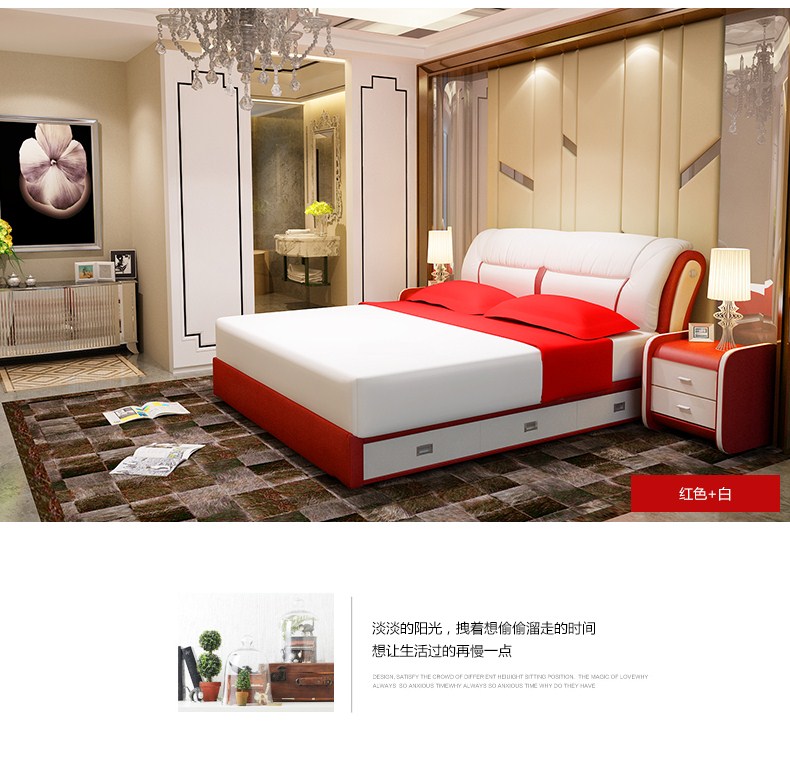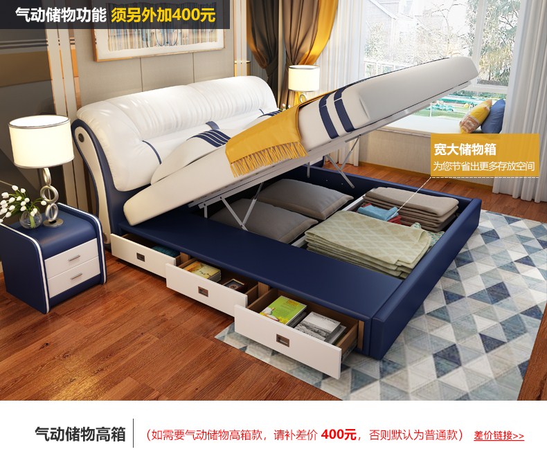 商品名称:凯蒙豪创 床 真皮床 软床 皮床 双人床1.8*2.0米-标准床+椰棕床