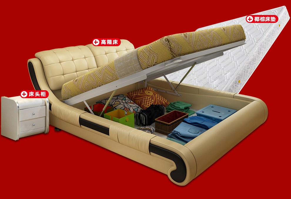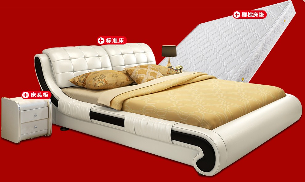 商品名称:中派 床卧室双人真皮床 1.8*2.0标准床+床垫+床头柜1个