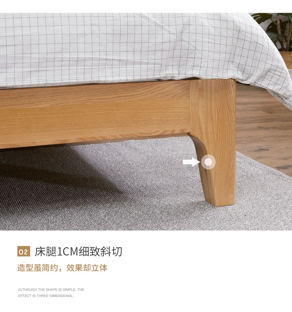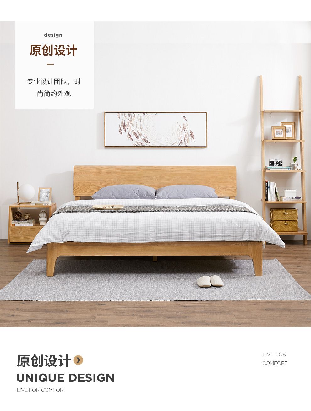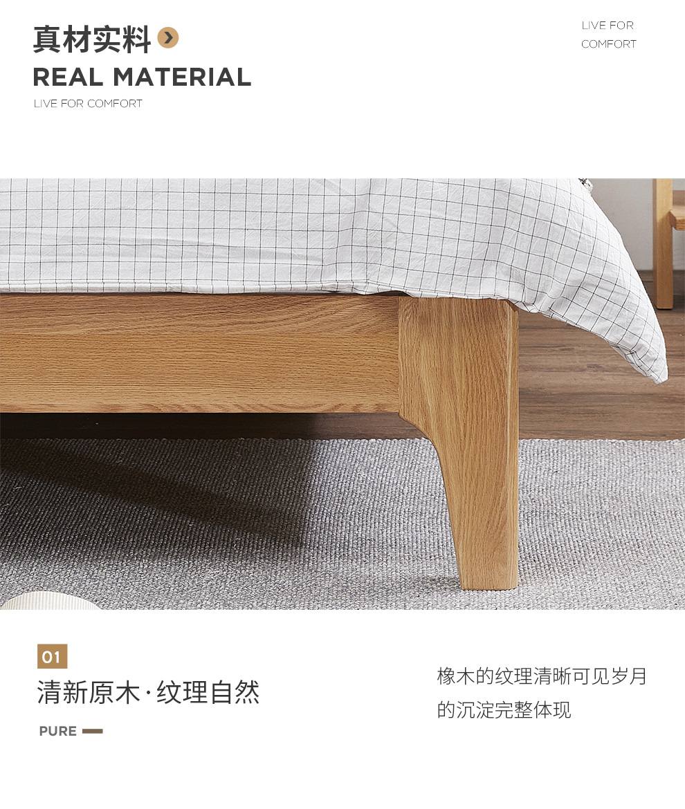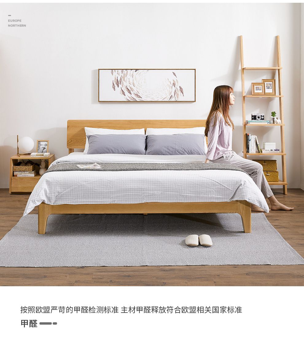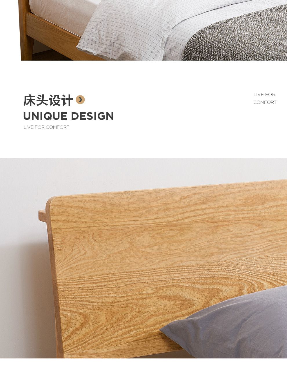 悠质家 床 实木床1.8米单人双人床1.5米北欧橡木卧室家具 A1703