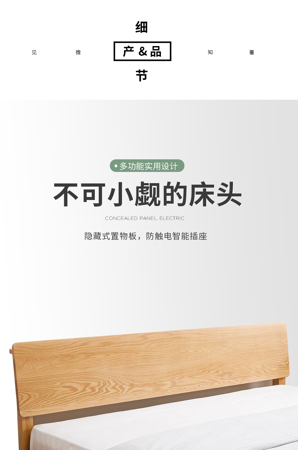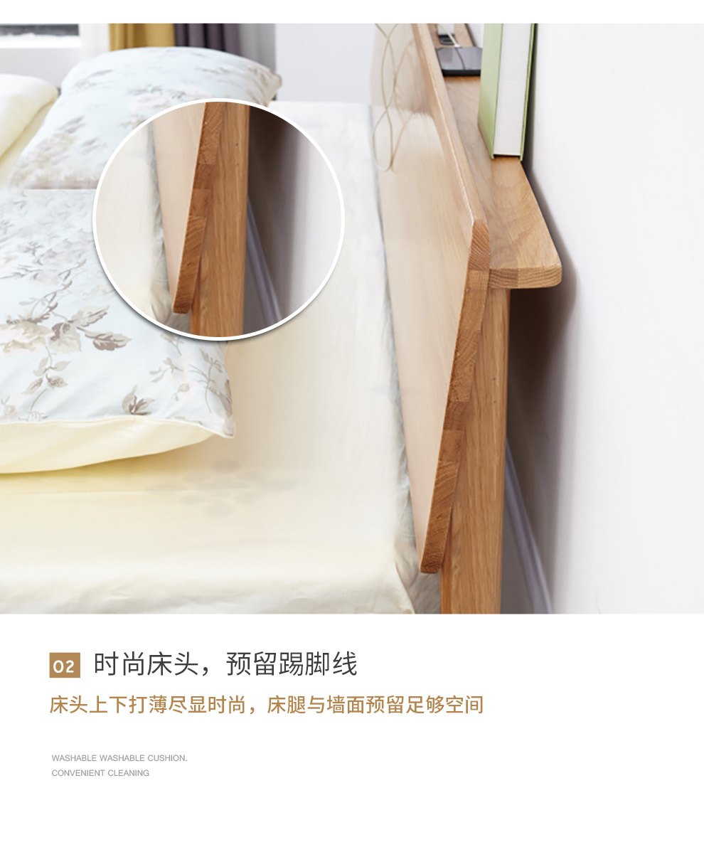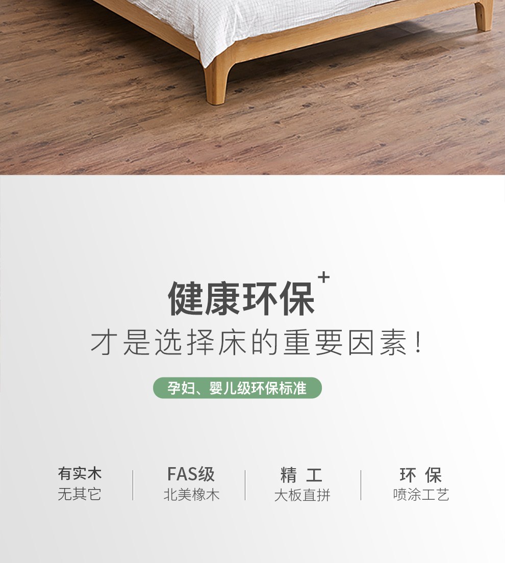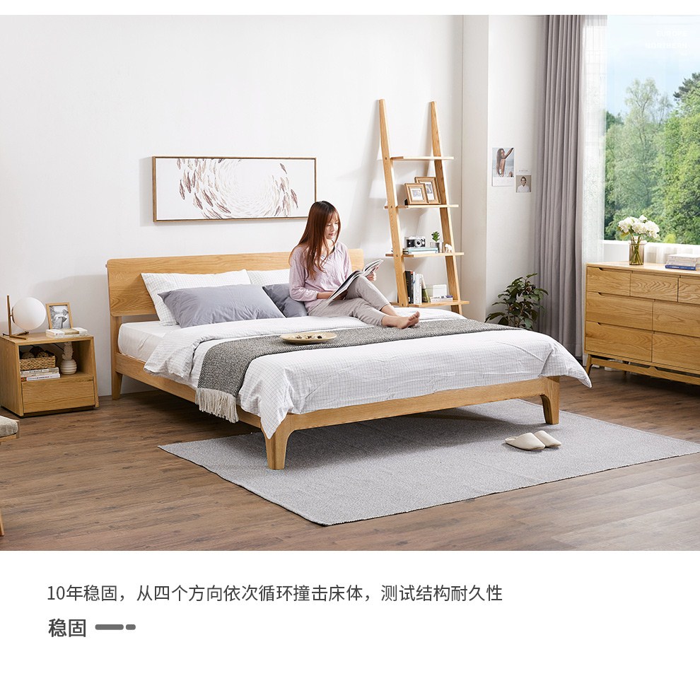 悠质家 床 实木床1.8米单人双人床1.5米北欧橡木卧室家具 A1703