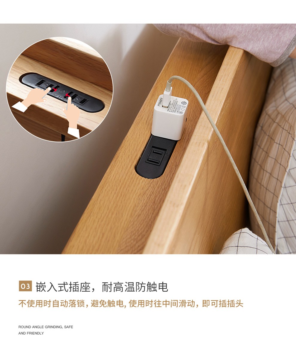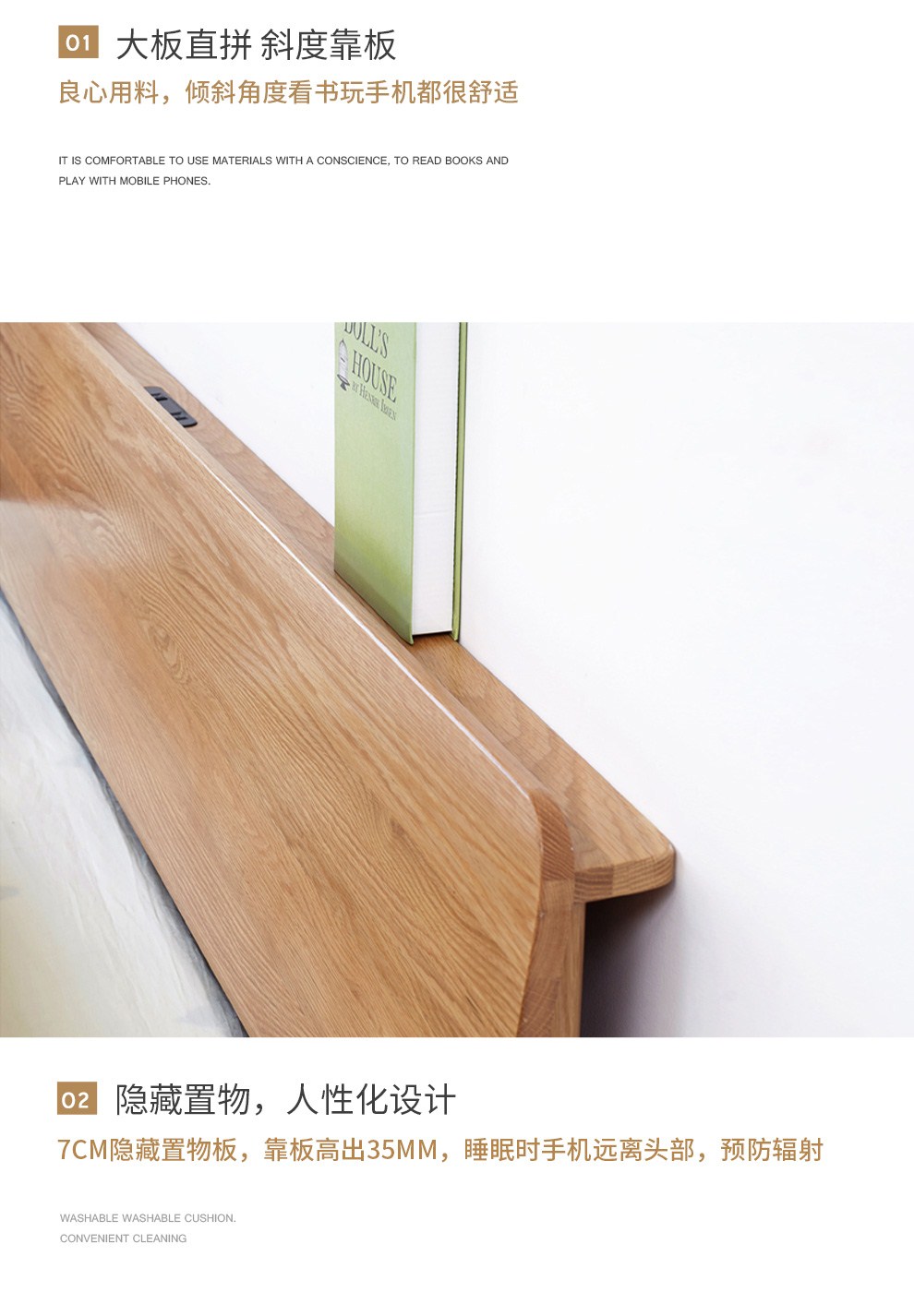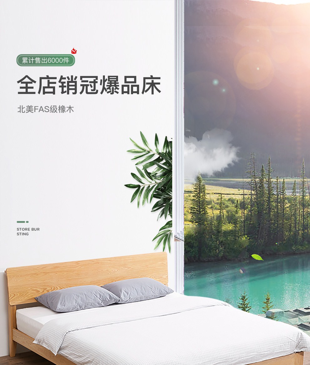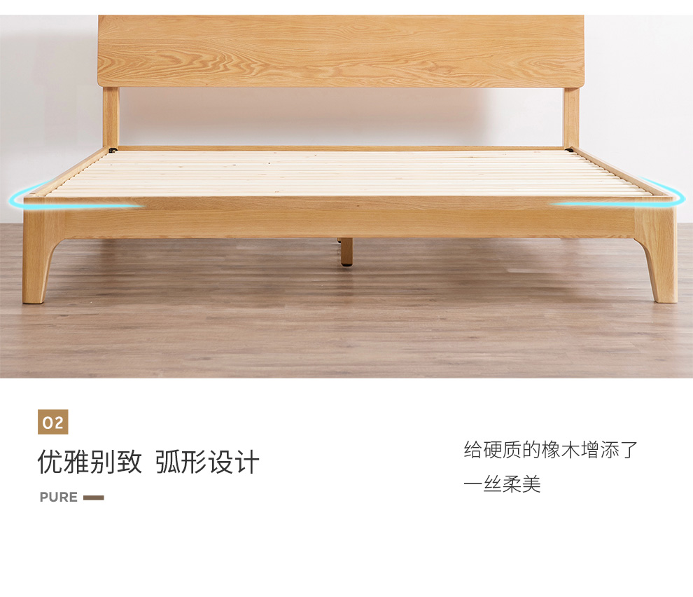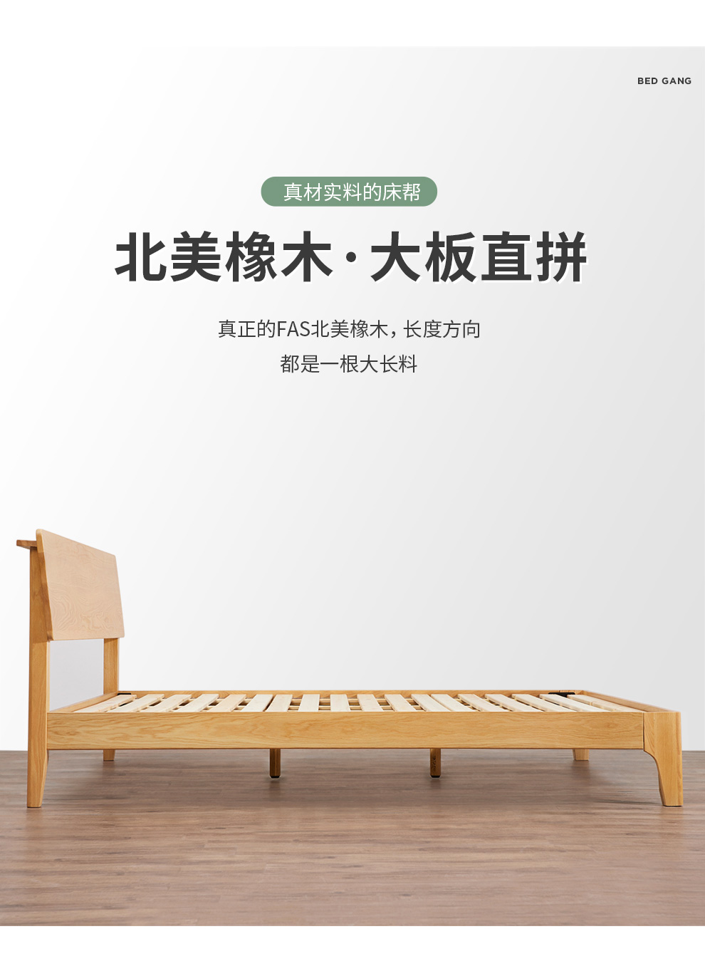 悠质家 床 实木床1.8米单人双人床1.5米北欧橡木卧室家具 A1703