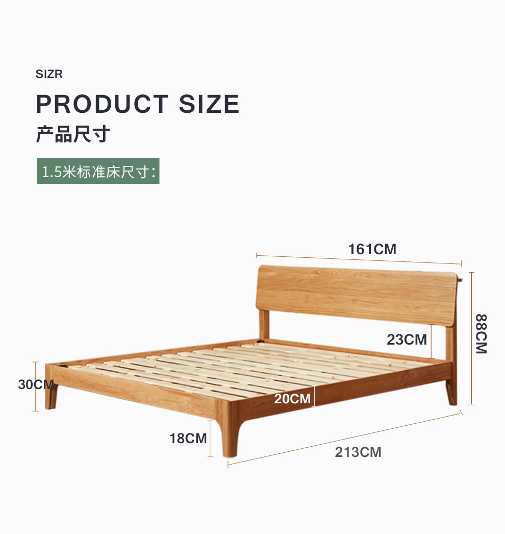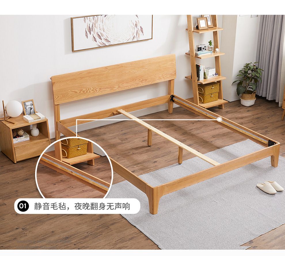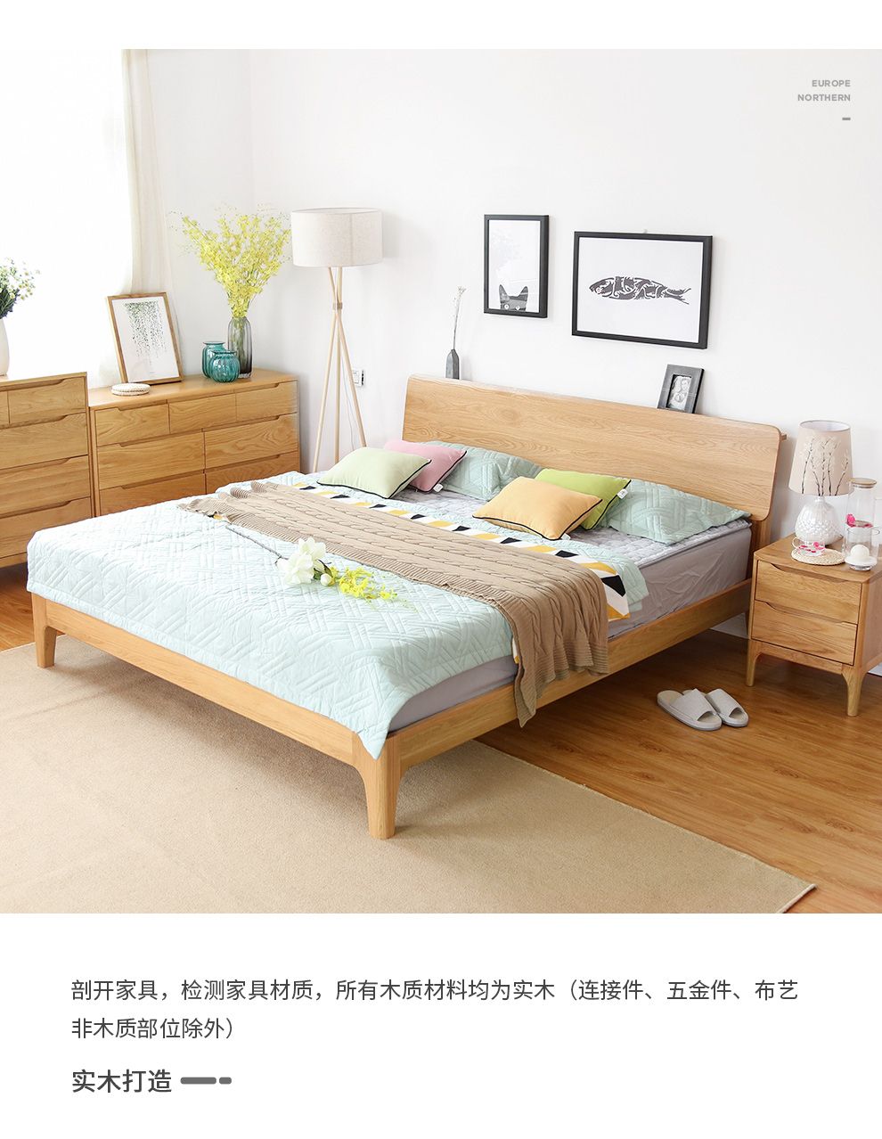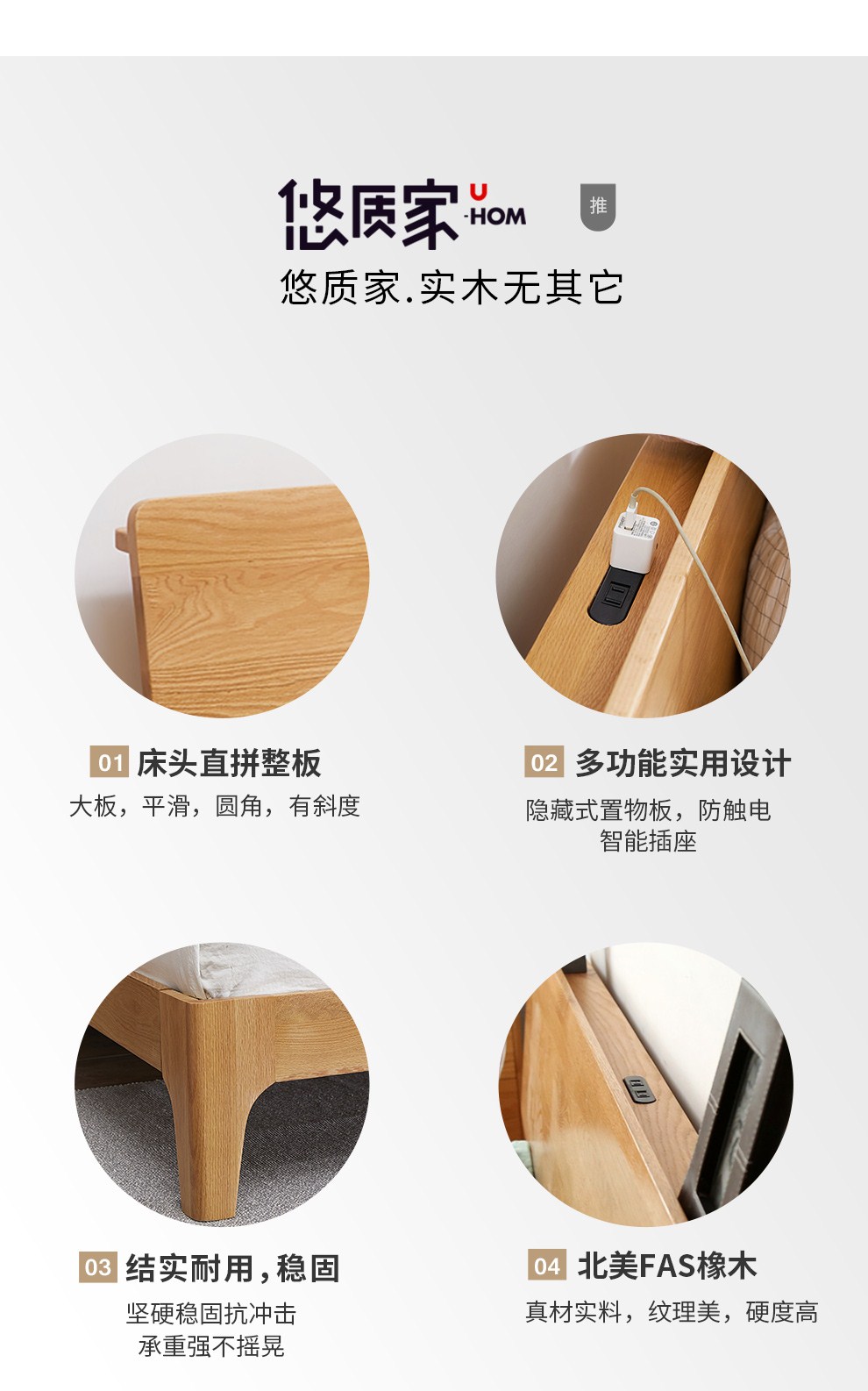 商品名称:悠质家 床 实木床1.8米单人双人床1.5米北欧橡木卧室家具 A1703