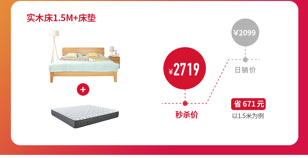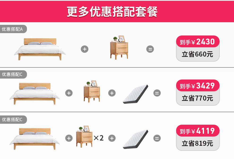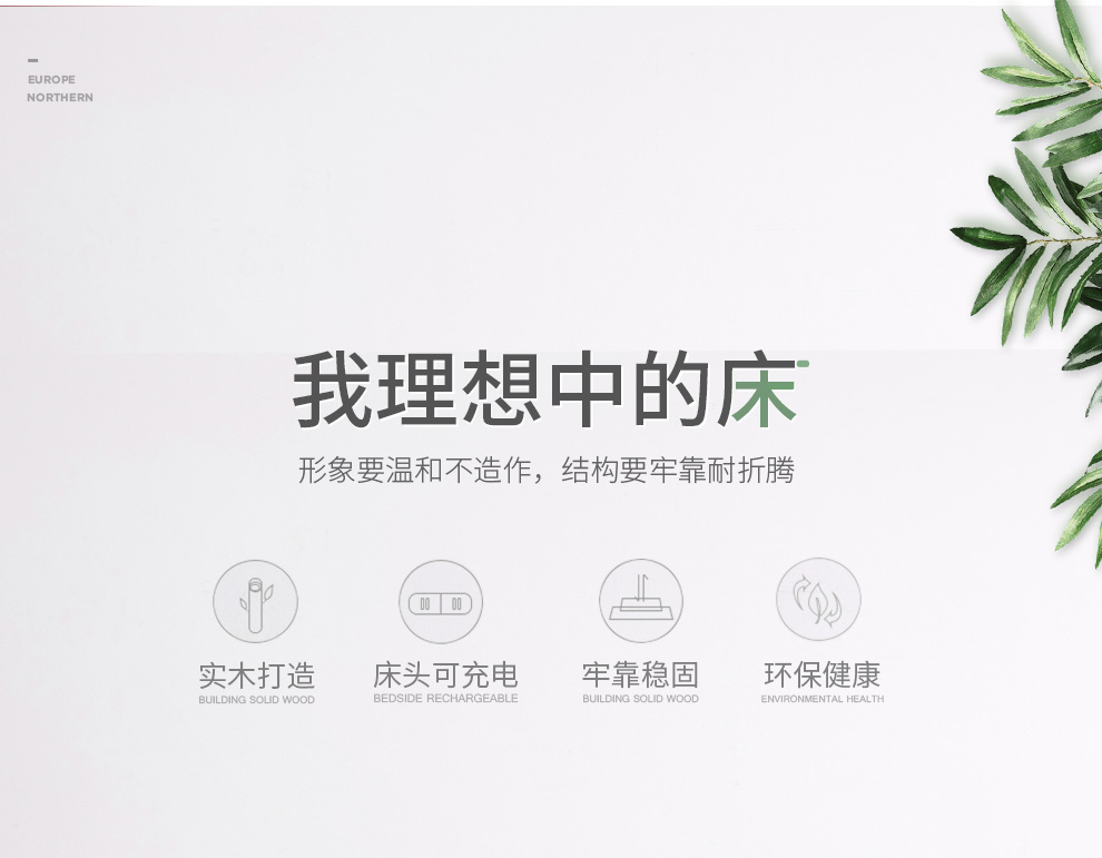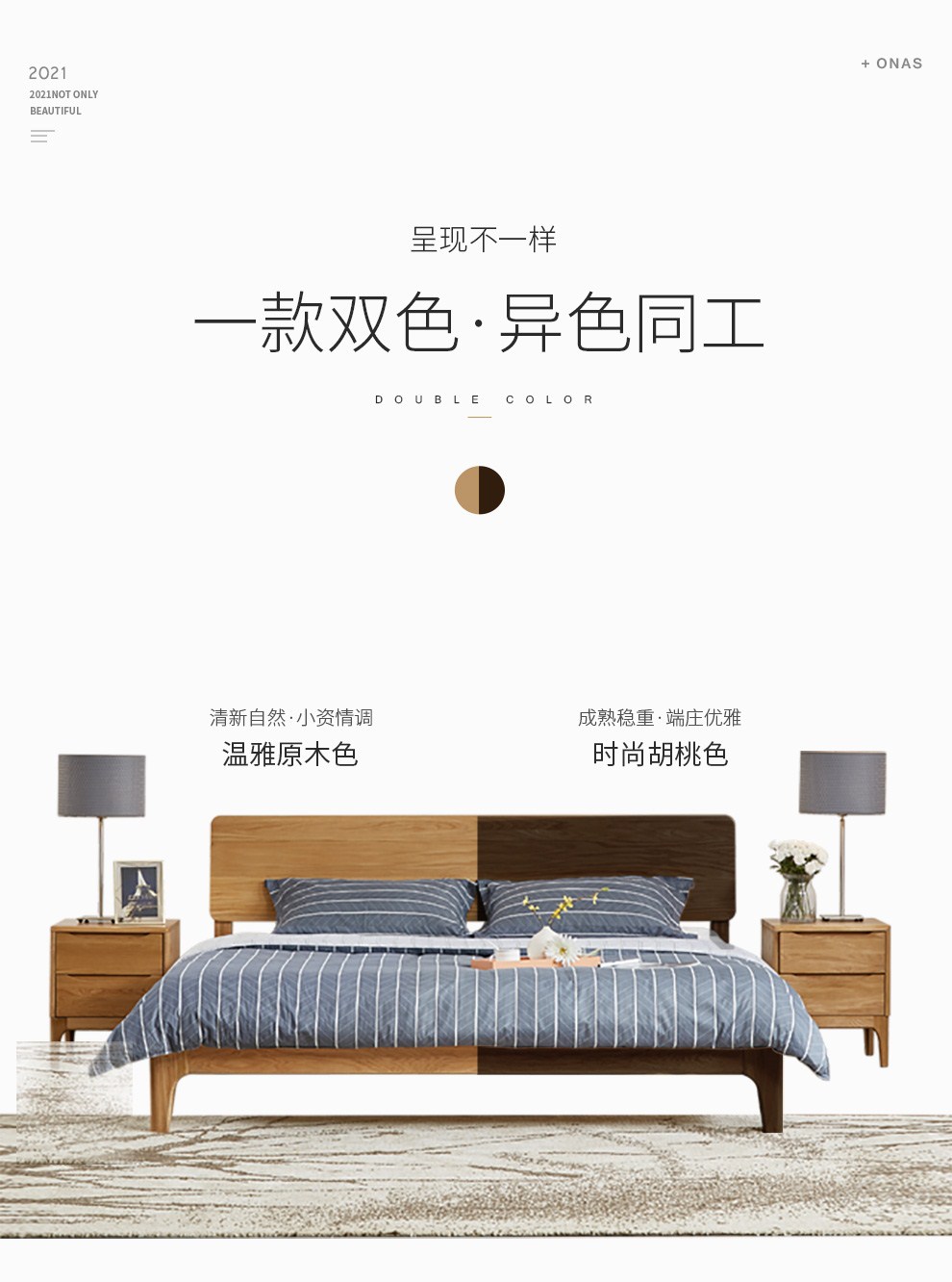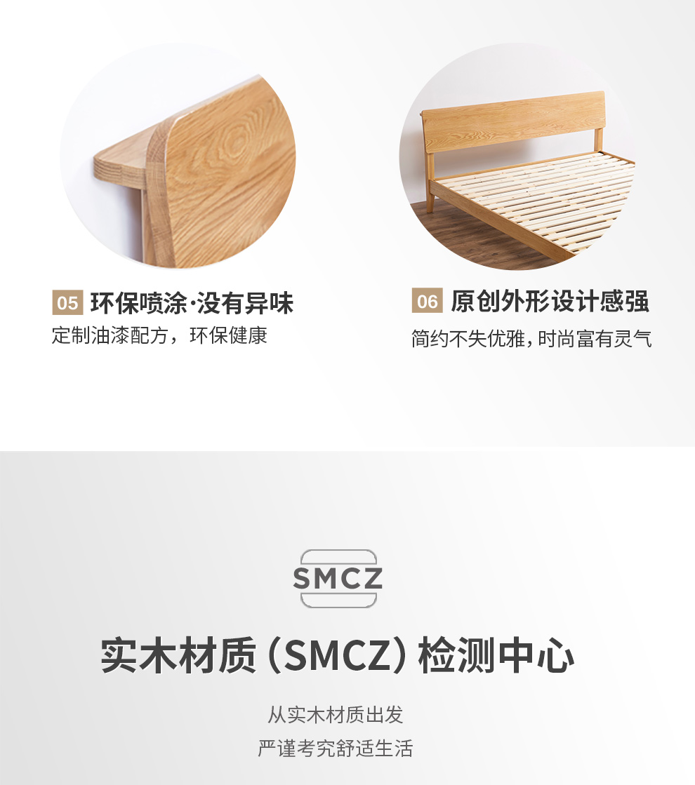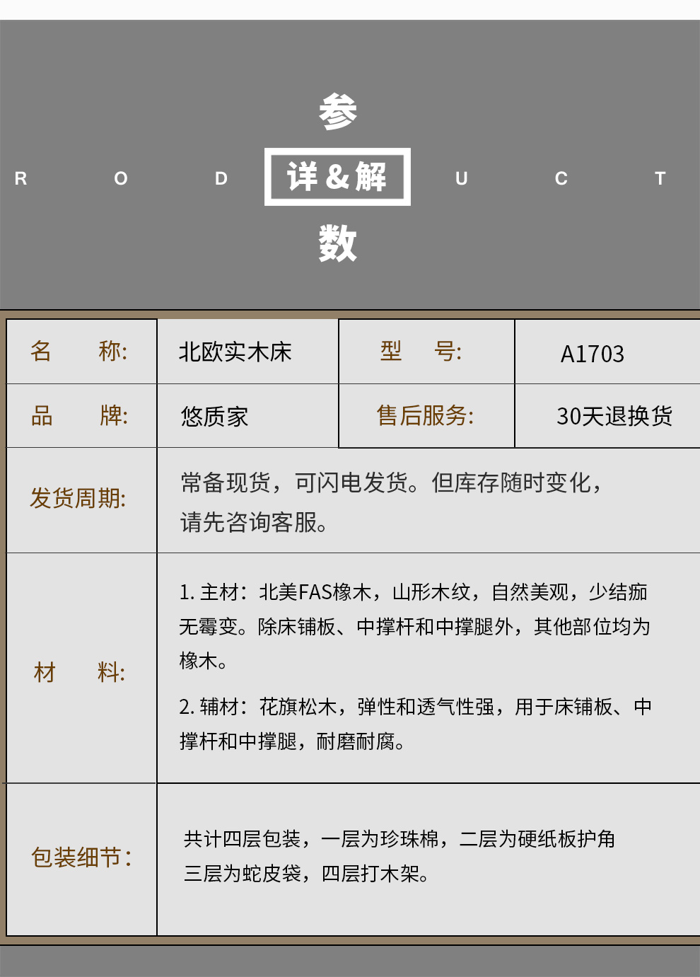 商品名称:悠质家 床 实木床1.8米单人双人床1.5米北欧橡木卧室家具 A1703