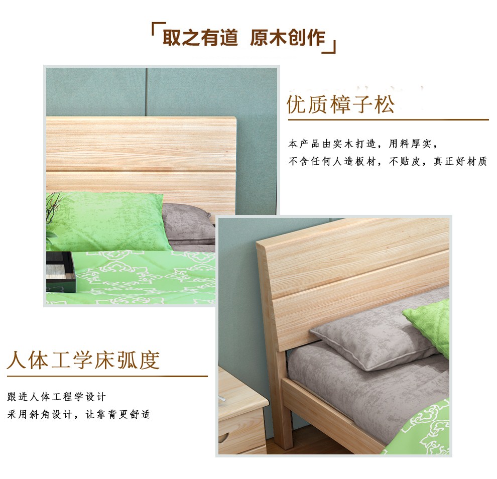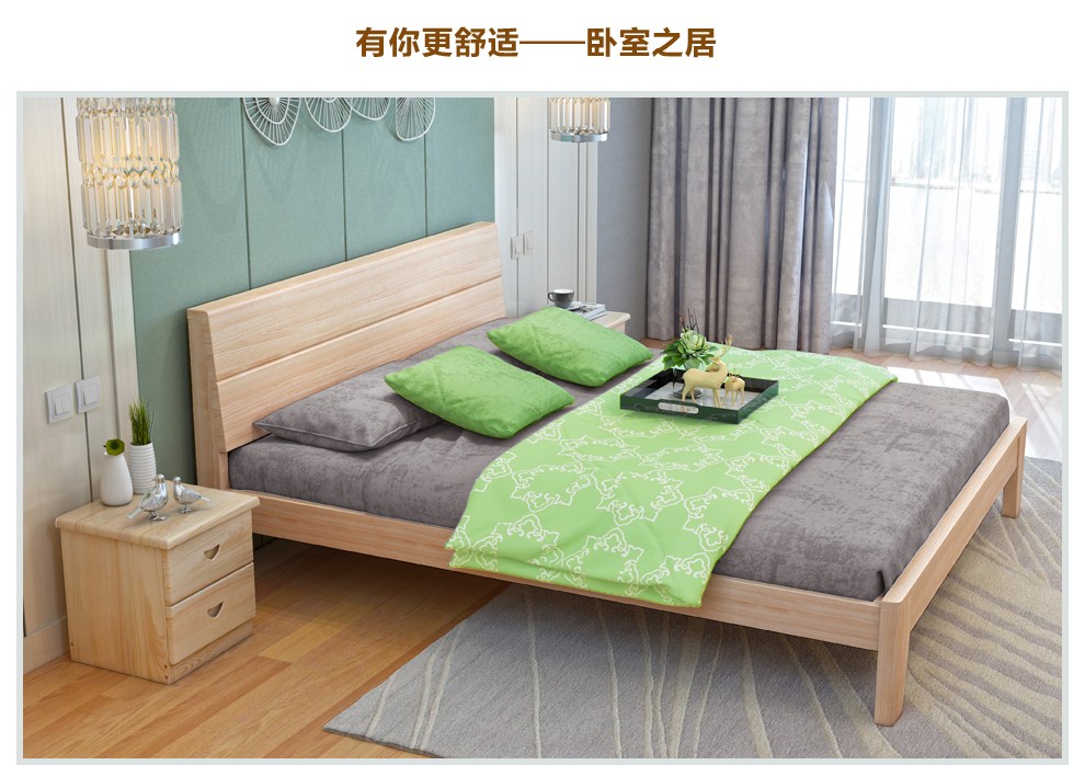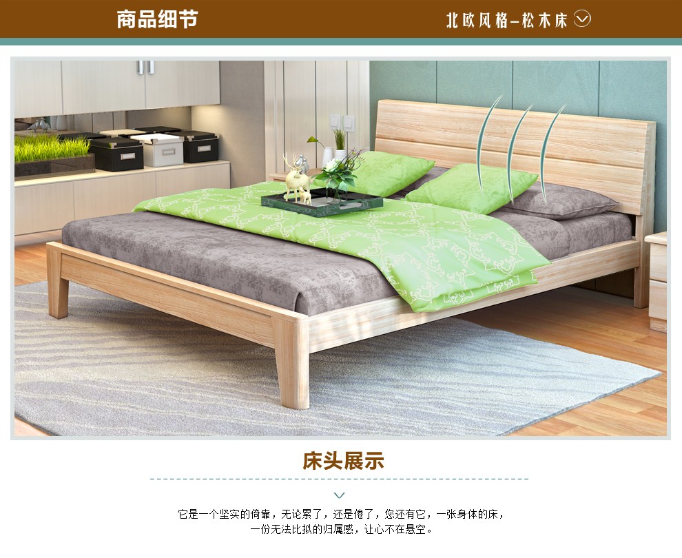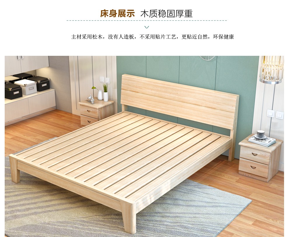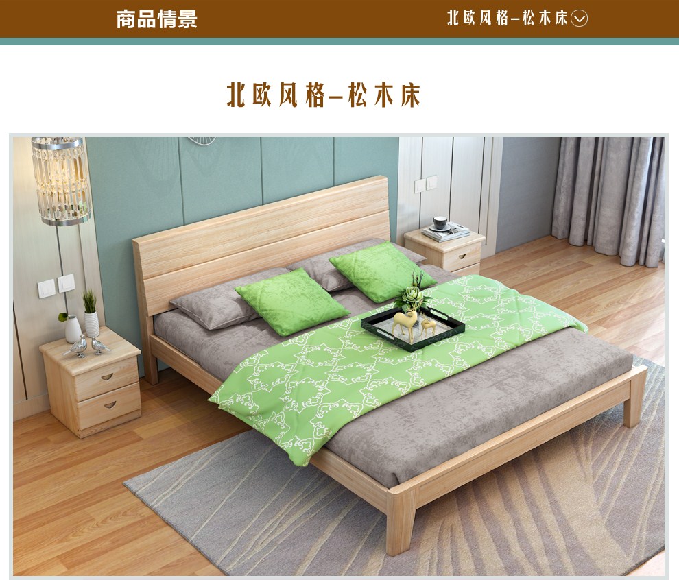 商品名称:蓓影 北欧实木床松木床单人床木床双人床卧室大床原木无漆床送3