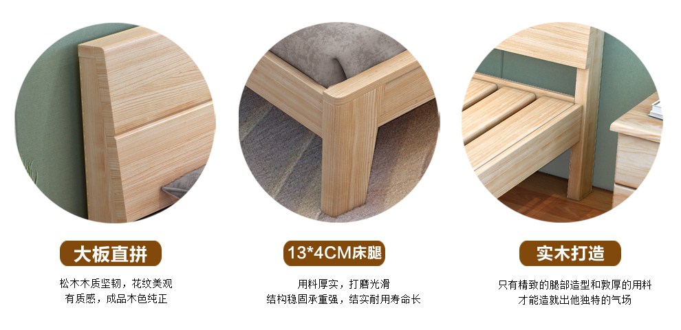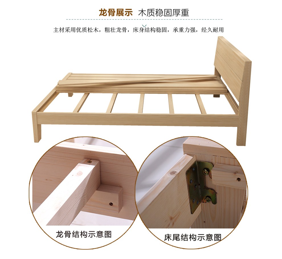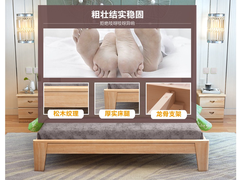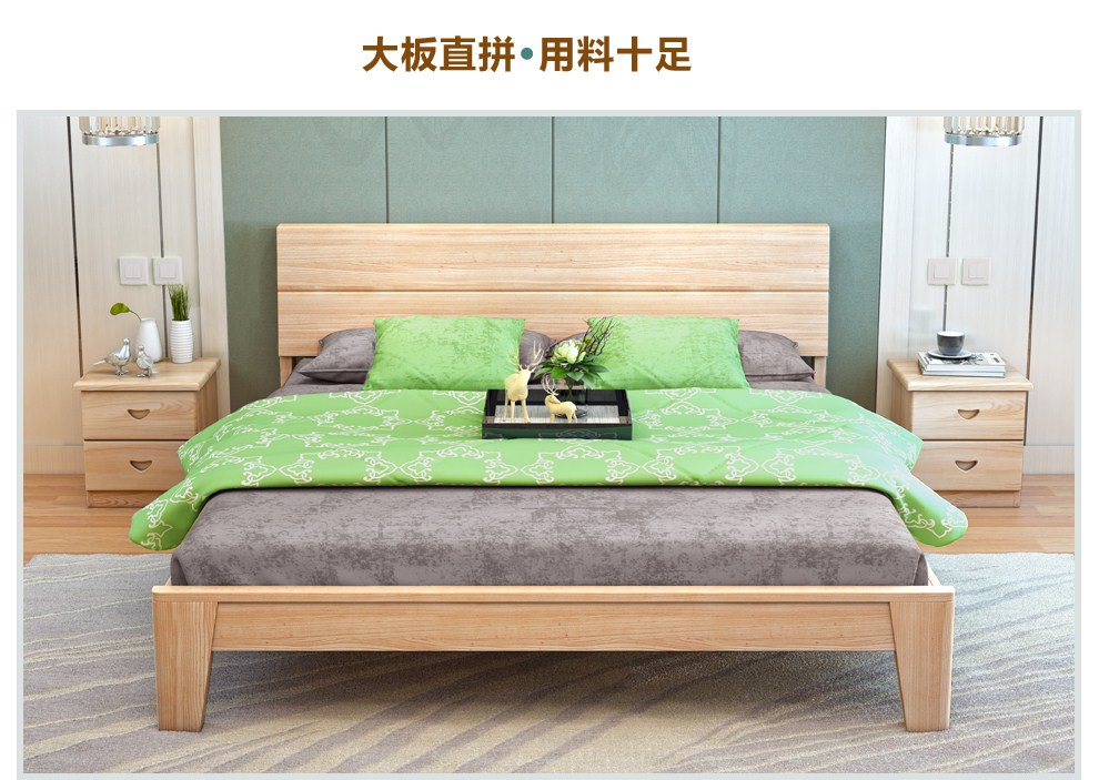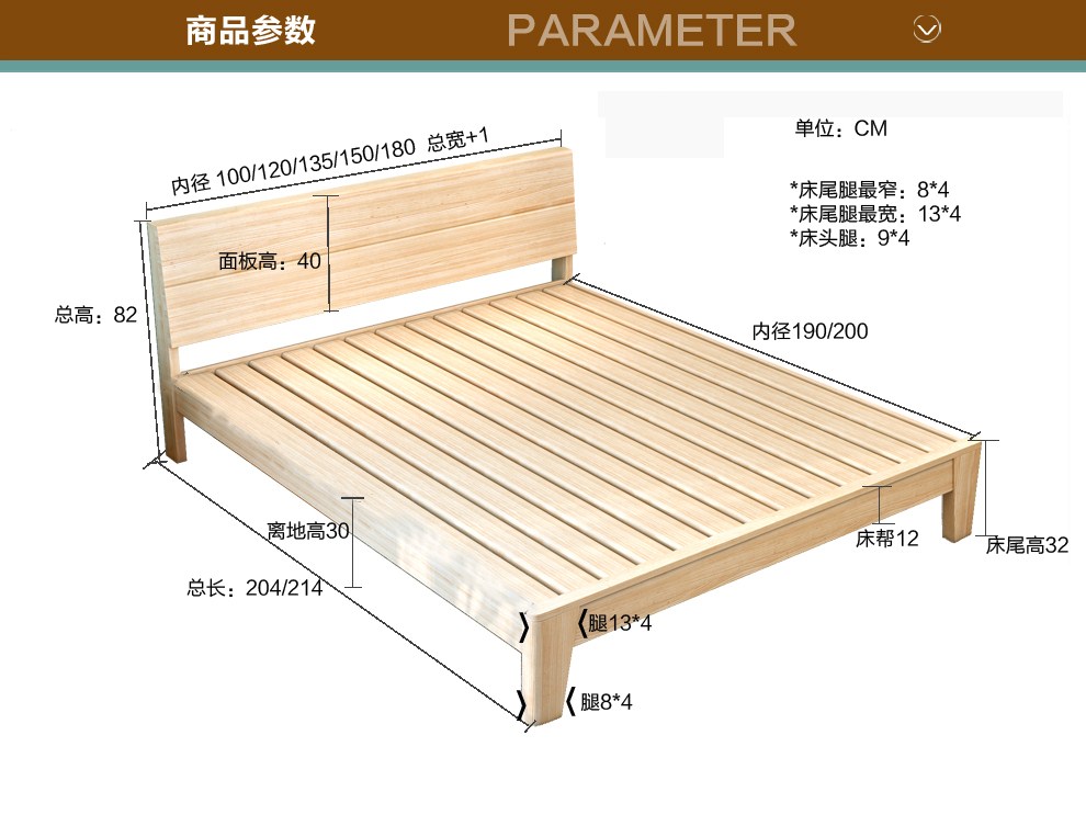 商品名称:蓓影 北欧实木床松木床单人床木床双人床卧室大床原木无漆床送3