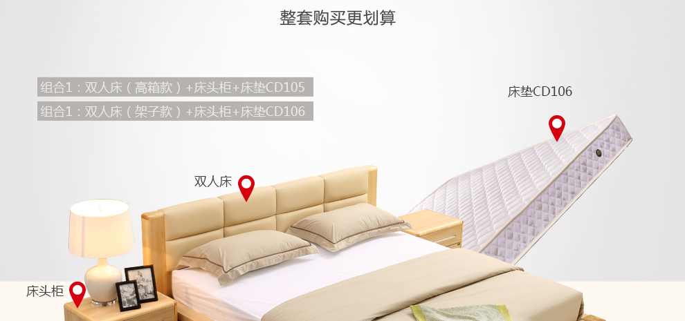 A家 床 框架实木床 1.5米1.8米北欧双人床单人储物高箱床现代简