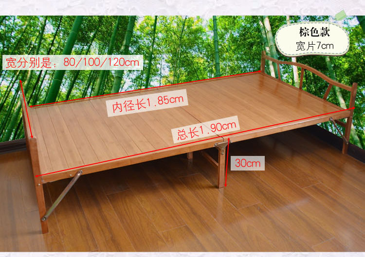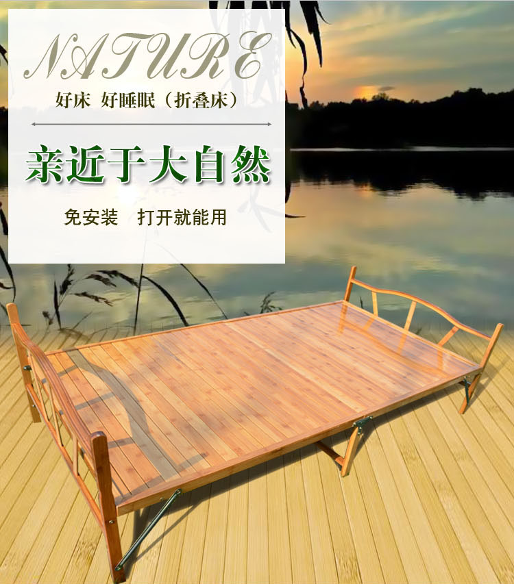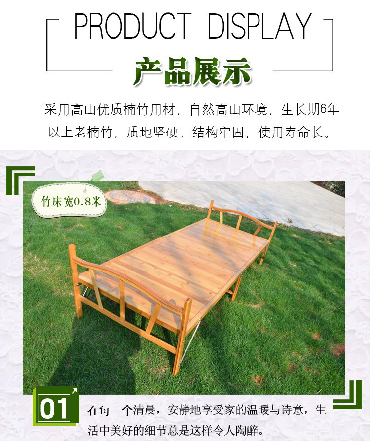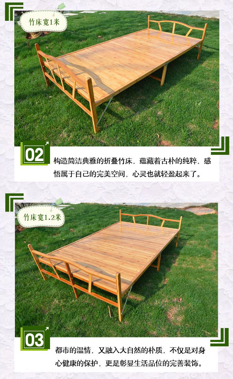 云峰竹床折叠床单人床午睡床 多功能简易经济型凉床家用1.2米无