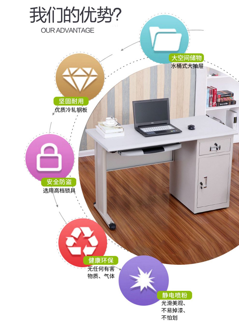 商品名称:久韵铁皮电脑桌钢制办公桌财务桌子带抽屉带锁桌子写字台 1.2米