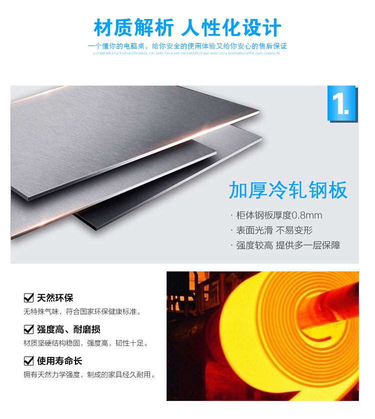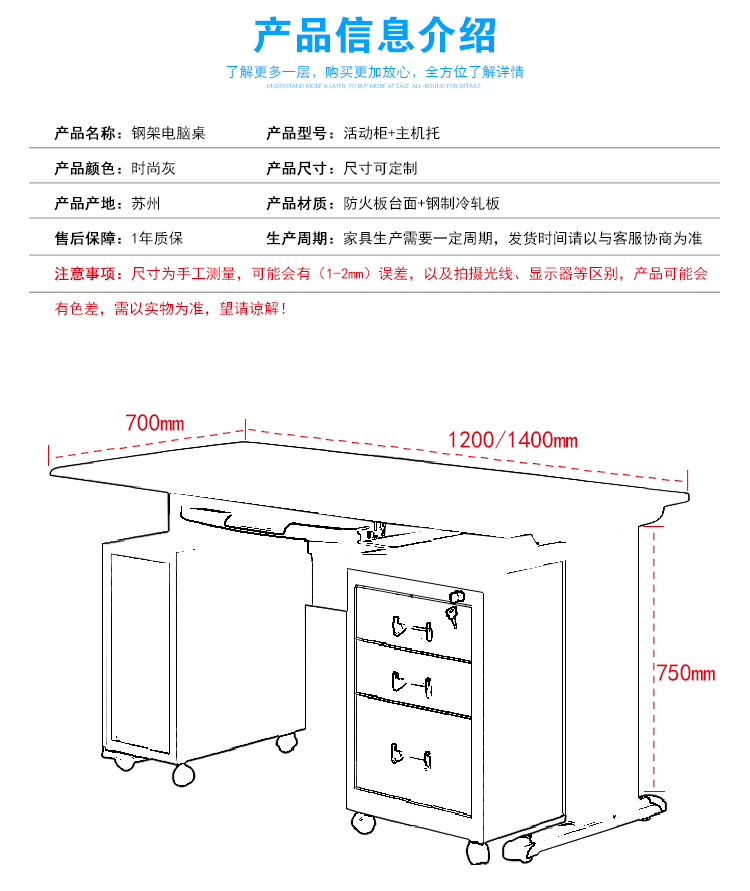 商品名称:苏美特钢制电脑桌铁皮办公桌财务桌带锁带抽屉1.2米