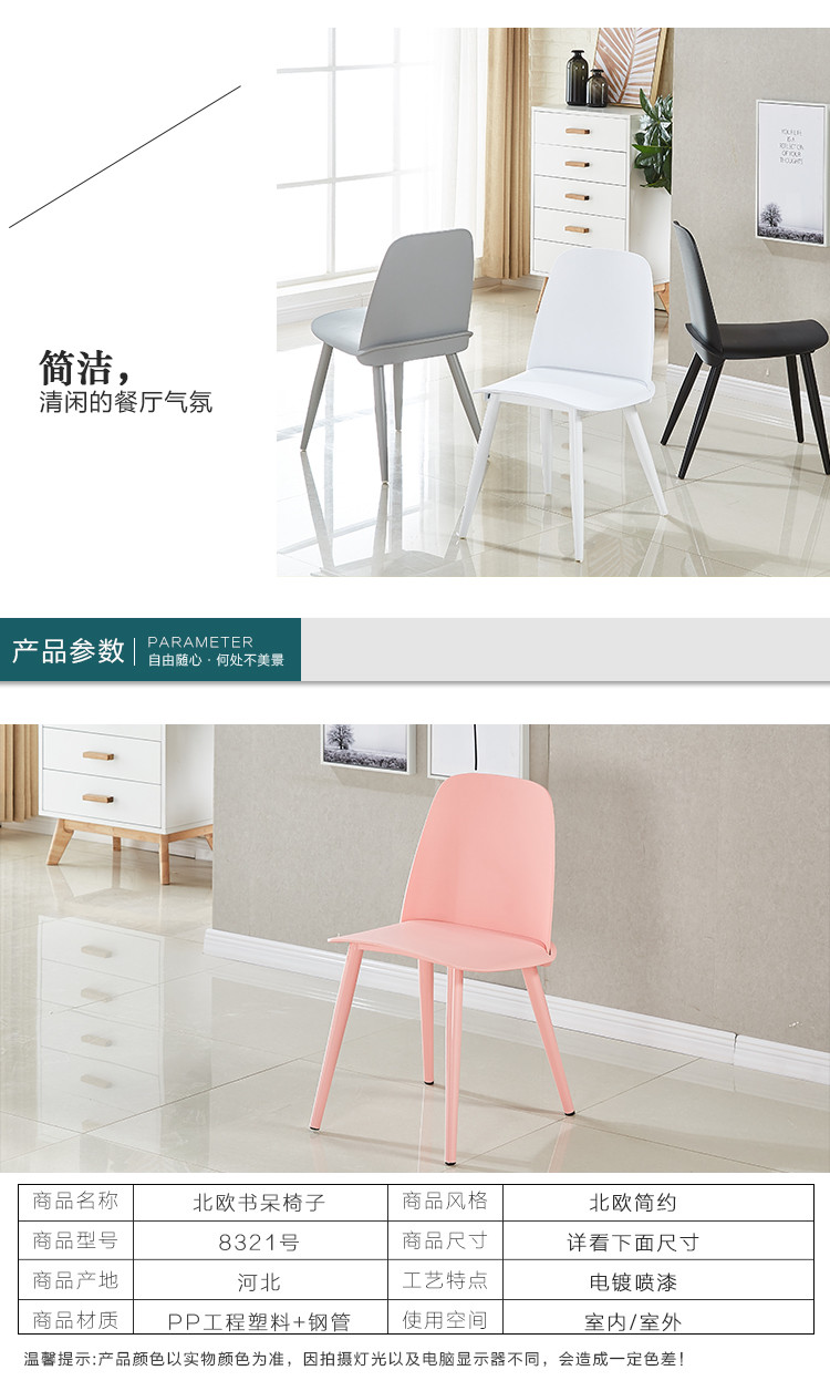 商品名称:北欧书呆椅子设计师餐椅现代简约餐厅彩色凳子家用靠背塑料餐桌椅