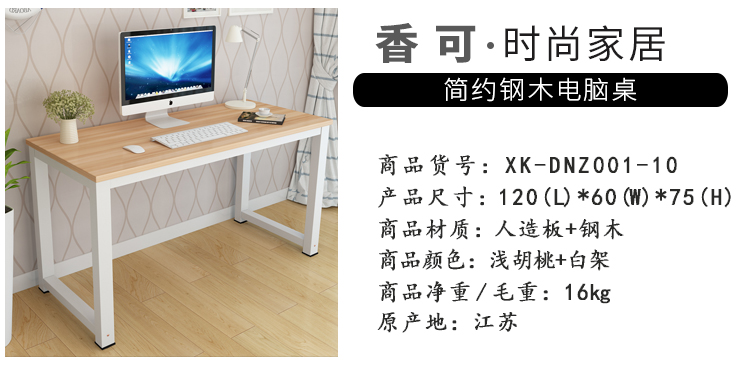 商品名称:香可钢木电脑桌台式简易书桌现代简约办公桌120*60*75cm浅胡桃