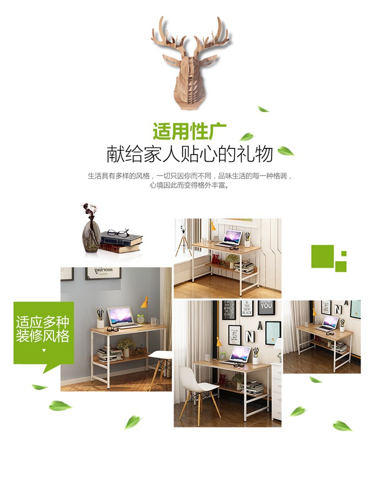 帅力 电脑桌 钢木带书架笔记本书桌简约台式学习办公桌子橡木色S