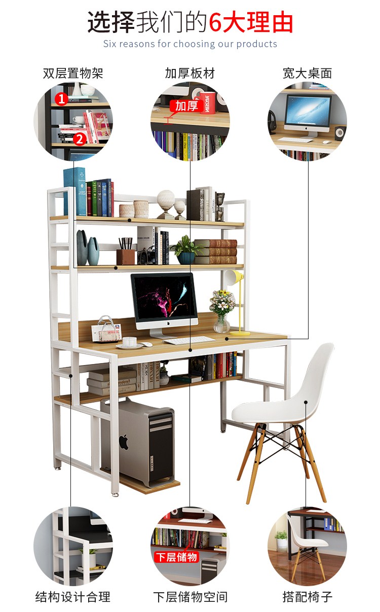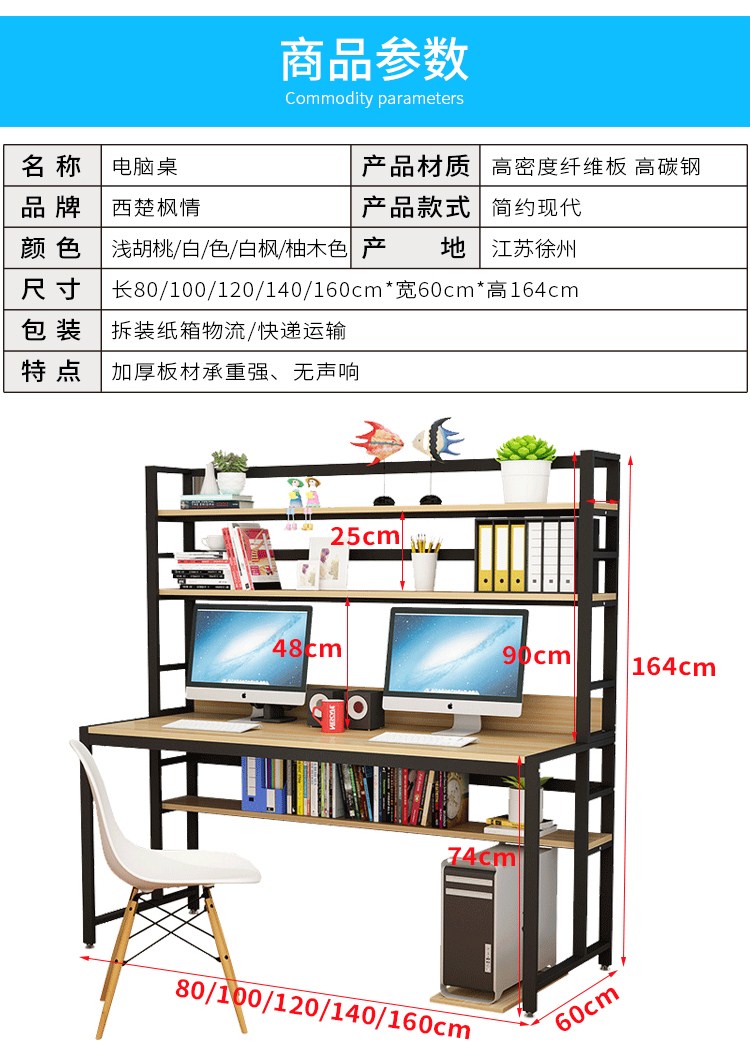 商品名称:西楚枫情钢木电脑桌台式家用书桌书柜书架组合现代简约学习桌办