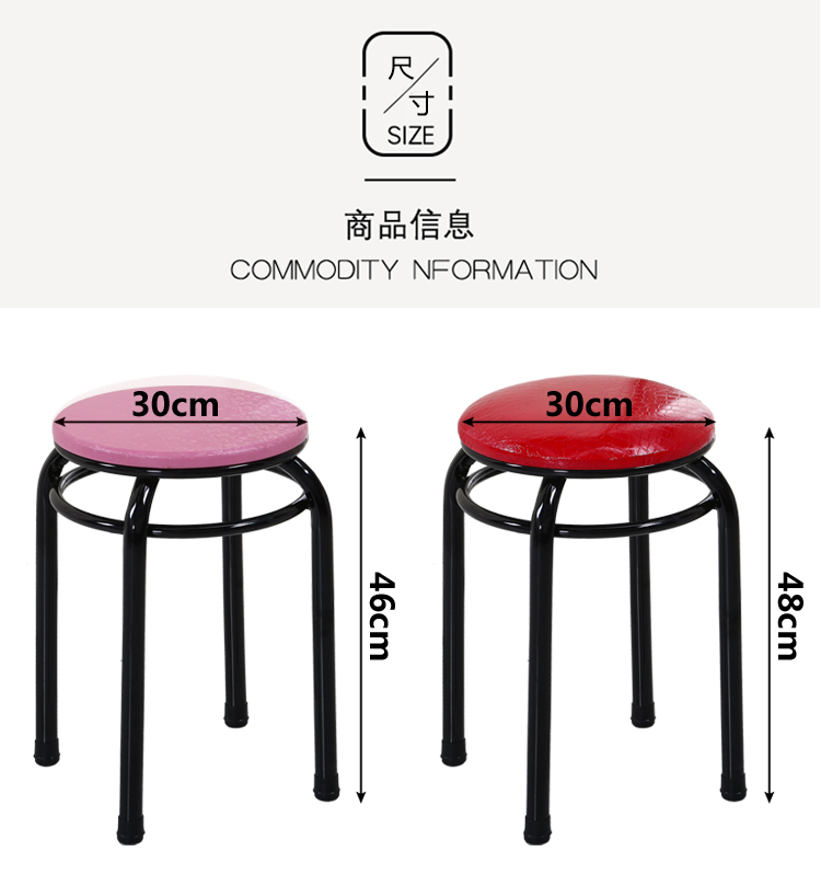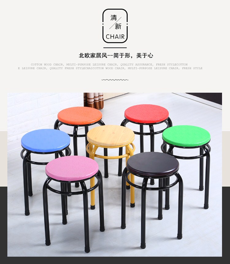 商品名称:家用凳子椅子成人金属小圆凳时尚创意实木板凳加厚塑料餐桌凳黑