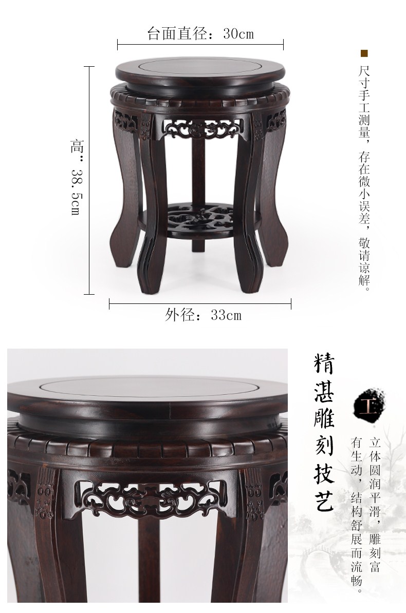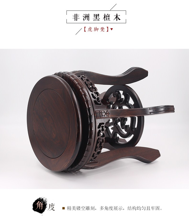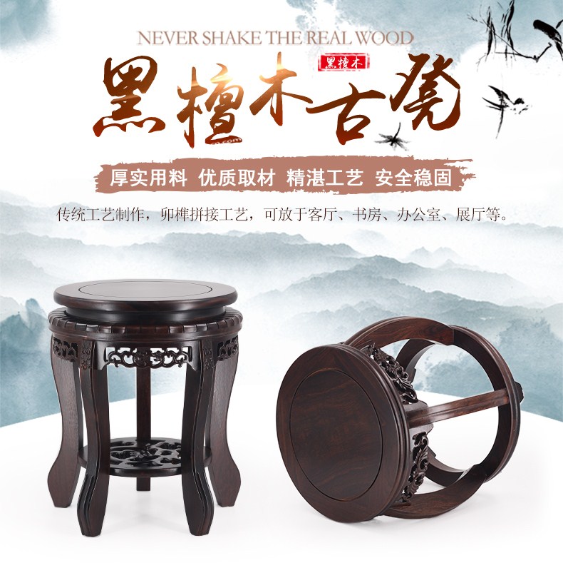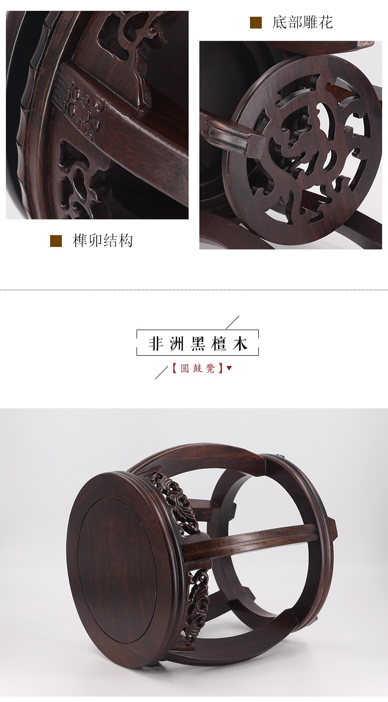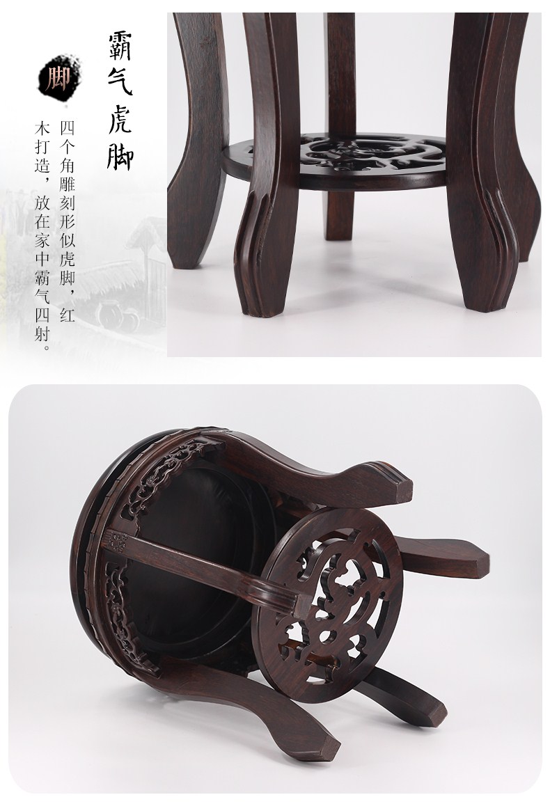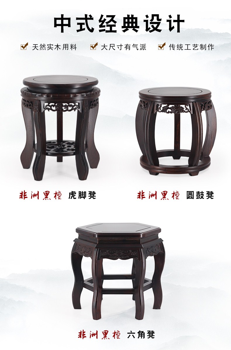 商品名称:鼓凳古筝凳仿古中式小矮凳子圆复古木制家用实木茶几板凳非洲-虎