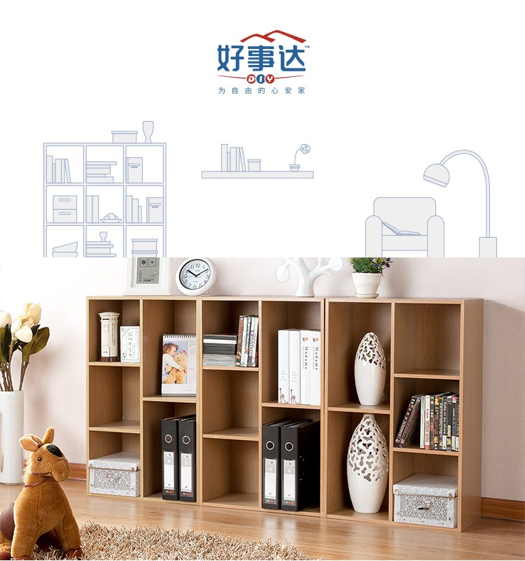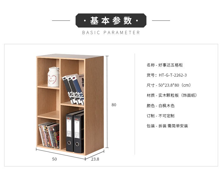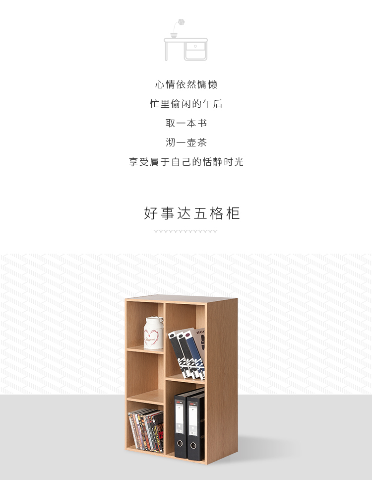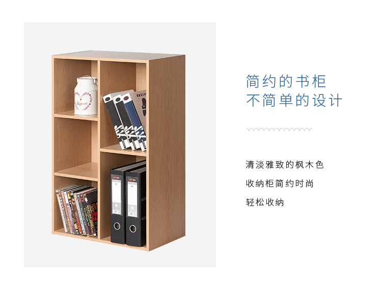 商品名称:好事达书柜收纳柜书架 木质储物柜子五格置物柜枫木色2262