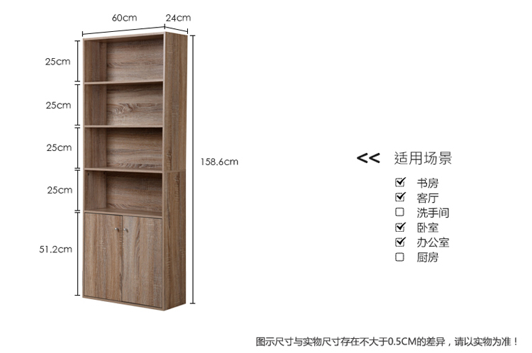 慧乐家 书柜书架 鲁比克六层带门组合储物收纳柜子层板可调节置